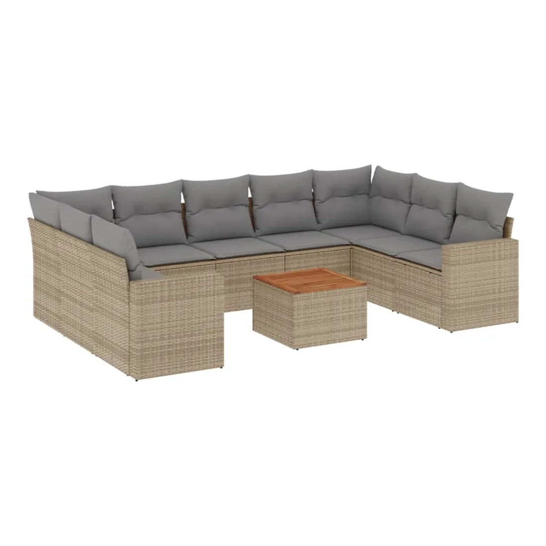 Salon de jardin et coussins 10 pcs mélange beige résine tressée