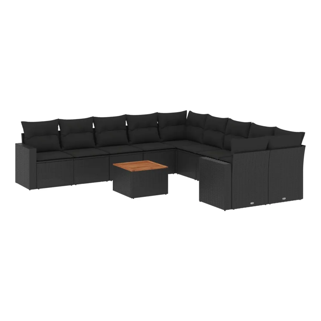 Salon de jardin 11 pcs avec coussins noir résine tressée