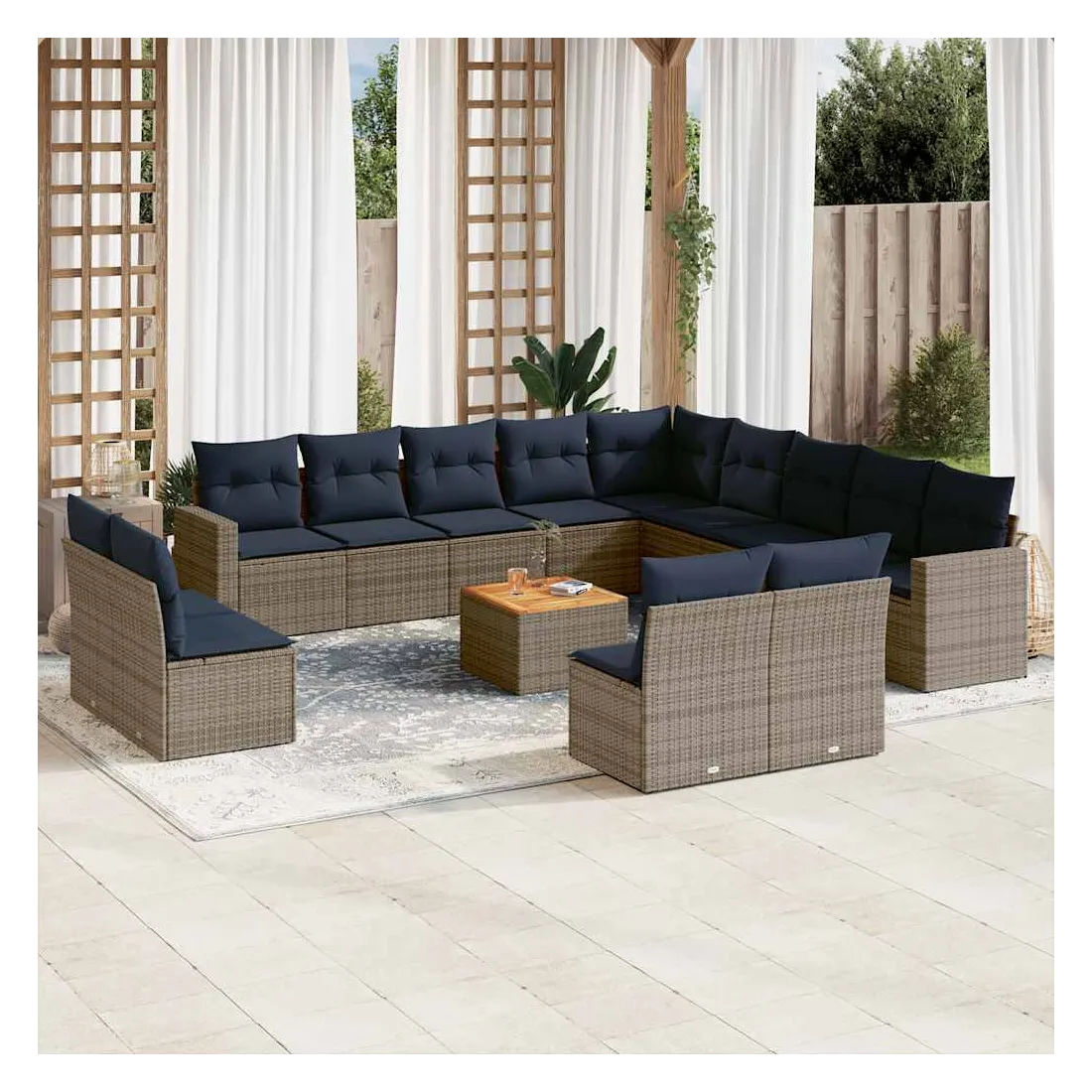 Cet ensemble de canapés de jardin est le complément parfait de votre arrière-cour, terrasse ou patio, offrant un espace confortable et accueillant pour discuter avec la famille et les amis ou simplement se détendre et profiter de l'extérieur. Matériau durable : la résine tressée, également connue sous le nom de poly rotin, est un matériau synthétique solide et nécessitant peu d'entretien qui ressemble au rotin naturel. Il est léger, facile à nettoyer et couramment utilisé pour les meubles d'extérieur en raison de sa durabilité et de ses propriétés de résistance aux intempéries.Fonction de rangement avec sac résistant à l'eau : chaque siège de jardin dispose d'un espace de rangement sous l'assise, complété par un sac résistant à l'eau pour ranger les coussins, les jouets et d'autres objets. Les sacs intérieurs sont dotés d'un couvercle et peuvent être solidement fixés aux sièges à l'aide de bandes auto-agrippantes pour plus de stabilité.Dessus stable et facile à nettoyer : cette table de jardin a un dessus en bois d'acacia robuste, durable et facile à nettoyer avec un chiffon humide.Housse amovible et lavable : ces coussins de siège sont dotés de housses amovibles pour un lavage et un entretien faciles.Conception modulaire : cet ensemble de meubles d'extérieur a une conception modulaire, ce qui le rend complètement flexible et facile à déplacer, afin que vous puissiez créer un agencement de meubles d'extérieur personnalisé. Bon à savoir :Pour que vos meubles d'extérieur restent beaux, nous vous recommandons de les protéger avec une housse imperméable.