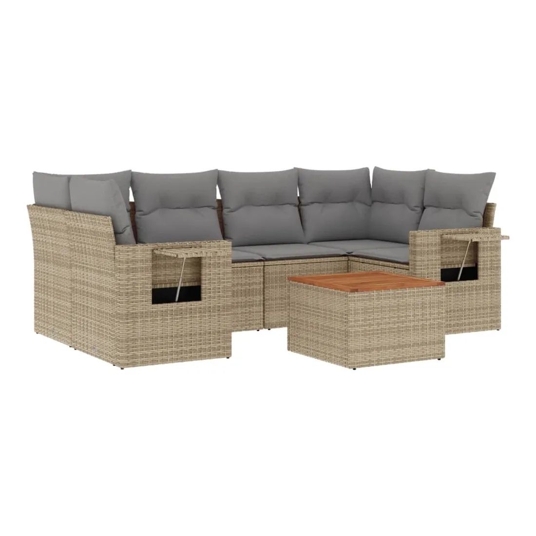 Cet ensemble de canapés de jardin est le complément parfait de votre arrière-cour, terrasse ou patio, offrant un espace confortable et accueillant pour discuter avec la famille et les amis ou simplement se détendre et profiter de l'extérieur. Matériau durable : la résine tressée, également connue sous le nom de poly rotin, est un matériau synthétique solide et nécessitant peu d'entretien qui ressemble au rotin naturel. Il est léger, facile à nettoyer et couramment utilisé pour les meubles d'extérieur en raison de sa durabilité et de ses propriétés de résistance aux intempéries.Fonction de rangement avec sac résistant à l'eau : chaque siège de jardin dispose d'un espace de rangement sous l'assise, complété par un sac résistant à l'eau pour ranger les coussins, les jouets et d'autres objets. Les sacs intérieurs sont dotés d'un couvercle et peuvent être solidement fixés aux sièges à l'aide de bandes auto-agrippantes pour plus de stabilité.Dessus stable et facile à nettoyer : cette table de jardin a un dessus en bois d'acacia robuste, durable et facile à nettoyer avec un chiffon humide.Table d'appoint pratique : ce mobilier d'extérieur comprend des tables d'appoint pliables avec un ressort à gaz sur les accoudoirs, offrant des endroits pratiques pour garder vos essentiels à portée de main.Conception modulaire : cet ensemble de meubles d'extérieur a une conception modulaire, ce qui le rend complètement flexible et facile à déplacer, afin que vous puissiez créer un agencement de meubles d'extérieur personnalisé. Bon à savoir :Pour que vos meubles d'extérieur restent beaux, nous vous recommandons de les protéger avec une housse imperméable.
