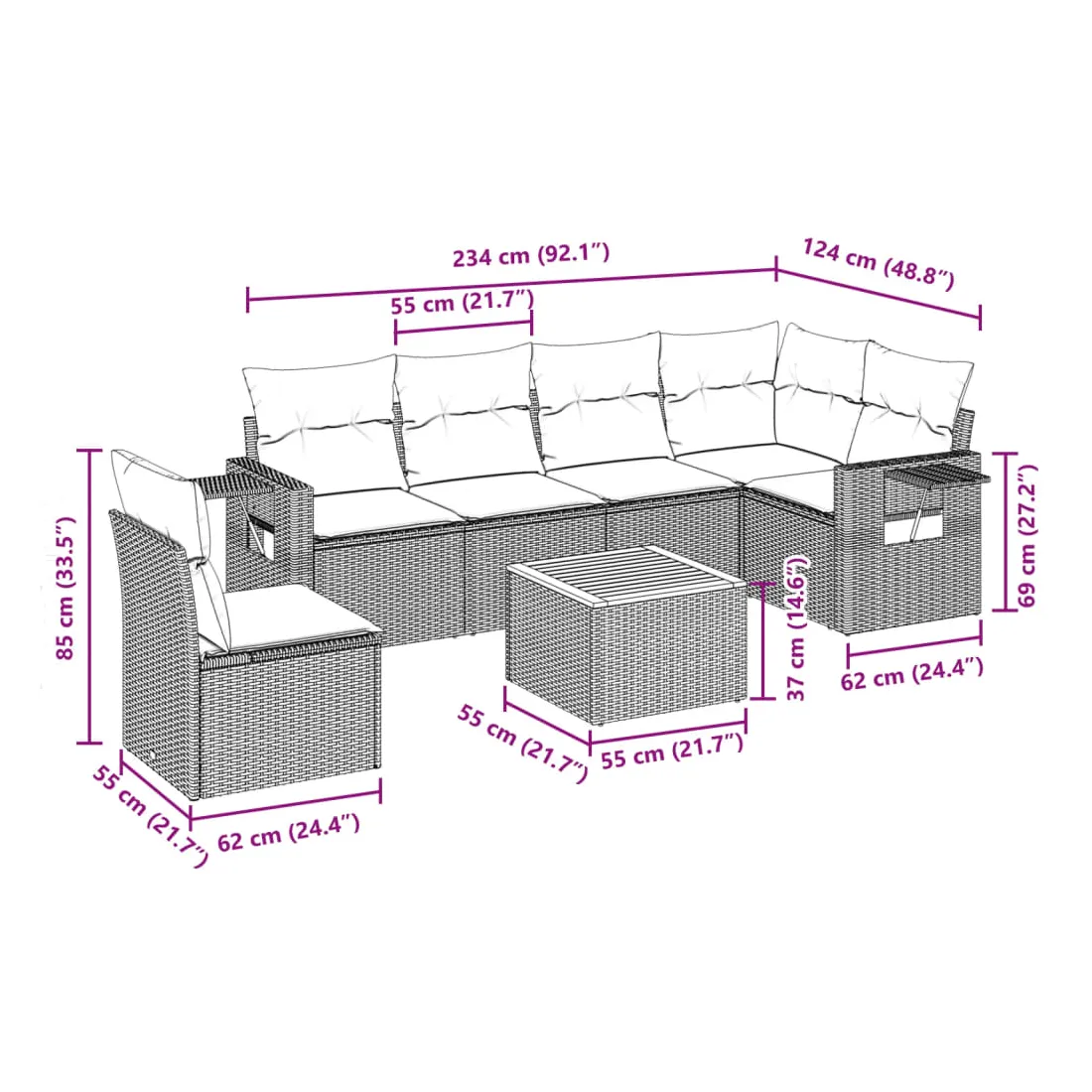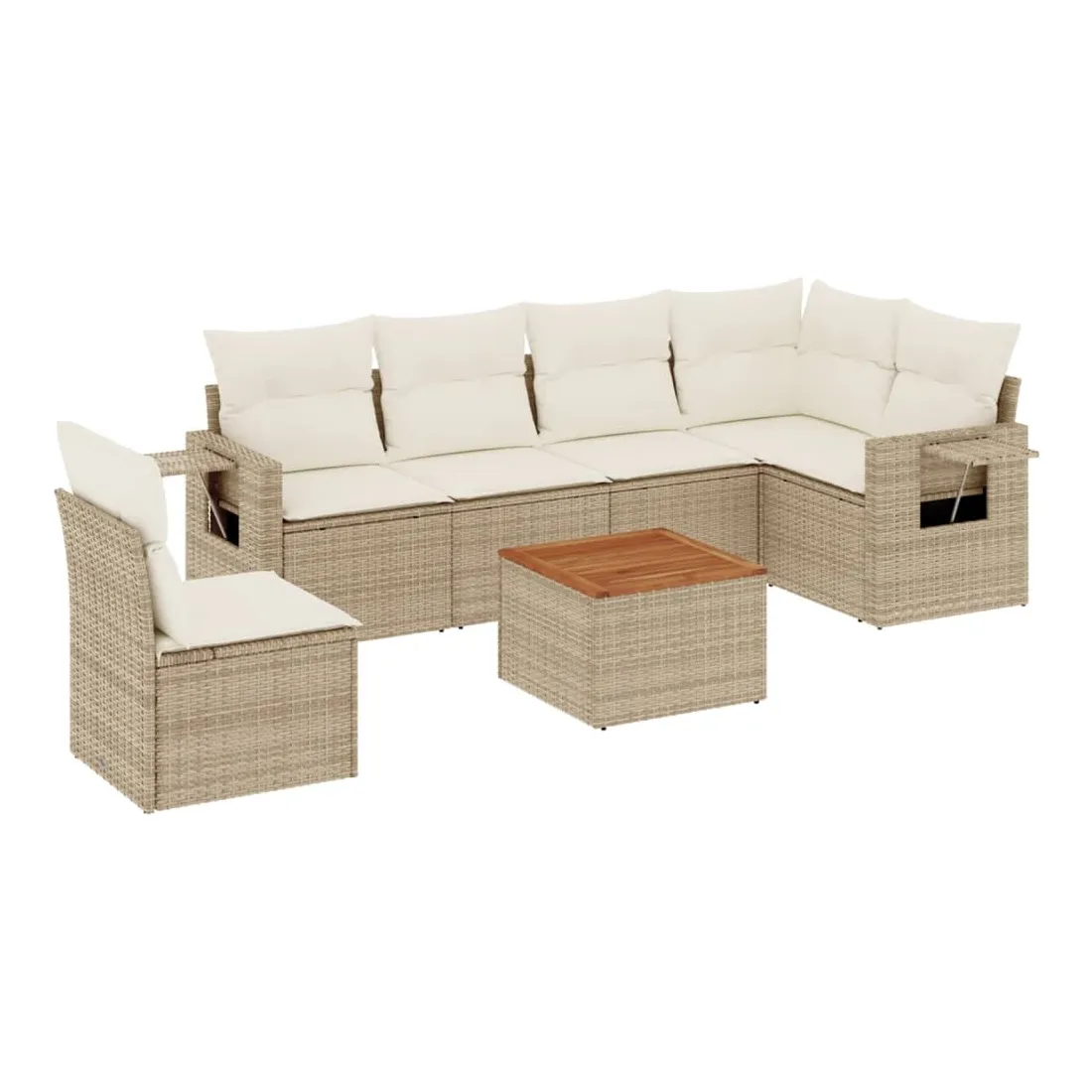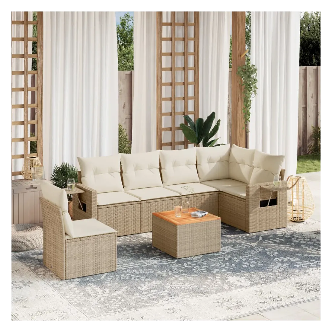 Salon de jardin avec coussins 7 pcs beige résine tressée