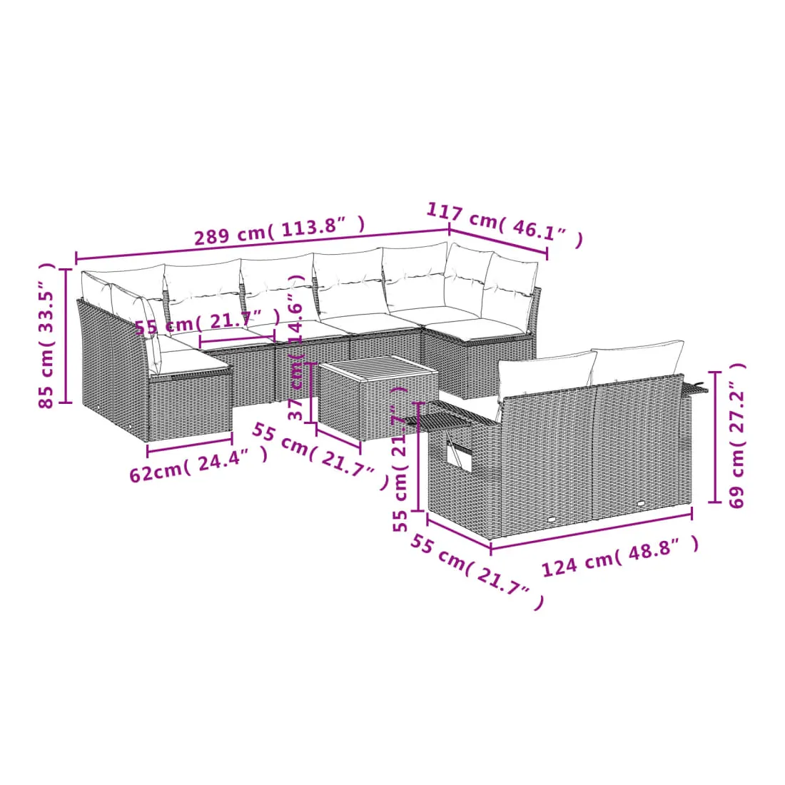 - 9 x coussin d'assise avec housse amovible et lavable