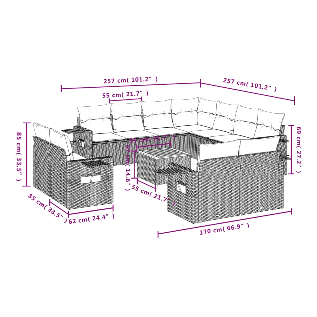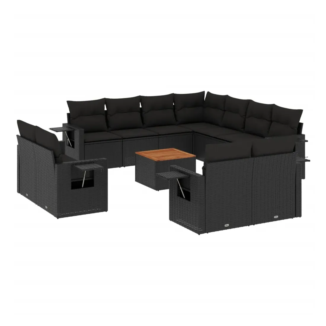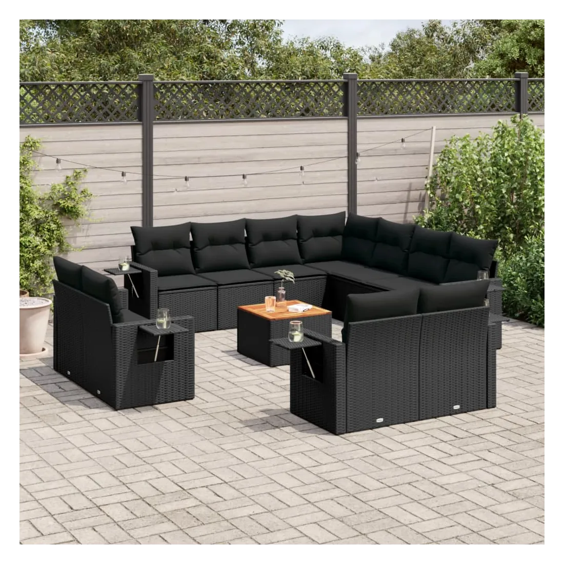 Cet ensemble de canapés de jardin est le complément parfait de votre arrière-cour, terrasse ou patio, offrant un espace confortable et accueillant pour discuter avec la famille et les amis ou simplement se détendre et profiter de l'extérieur. Matériau durable : la résine tressée, également connue sous le nom de poly rotin, est un matériau synthétique solide et nécessitant peu d'entretien qui ressemble au rotin naturel. Il est léger, facile à nettoyer et couramment utilisé pour les meubles d'extérieur en raison de sa durabilité et de ses propriétés de résistance aux intempéries.Fonction de rangement avec sac résistant à l'eau : chaque siège de jardin dispose d'un espace de rangement sous l'assise, complété par un sac résistant à l'eau pour ranger les coussins, les jouets et d'autres objets. Les sacs intérieurs sont dotés d'un couvercle et peuvent être solidement fixés aux sièges à l'aide de bandes auto-agrippantes pour plus de stabilité.Dessus stable et facile à nettoyer : cette table de jardin a un dessus en bois d'acacia robuste, durable et facile à nettoyer avec un chiffon humide.Table d'appoint pratique : ce mobilier d'extérieur comprend des tables d'appoint pliables avec un ressort à gaz sur les accoudoirs, offrant des endroits pratiques pour garder vos essentiels à portée de main.Conception modulaire : cet ensemble de meubles d'extérieur a une conception modulaire, ce qui le rend complètement flexible et facile à déplacer, afin que vous puissiez créer un agencement de meubles d'extérieur personnalisé. Bon à savoir :Pour que vos meubles d'extérieur restent beaux, nous vous recommandons de les protéger avec une housse imperméable.