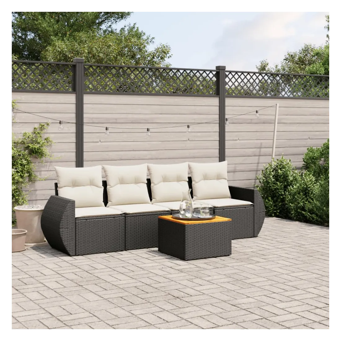 Cet ensemble de canapés de jardin est le complément parfait de votre arrière-cour, terrasse ou patio, offrant un espace confortable et accueillant pour discuter avec la famille et les amis ou simplement se détendre et profiter de l'extérieur. Matériau durable : la résine tressée, également connue sous le nom de poly rotin, est un matériau synthétique solide et nécessitant peu d'entretien qui ressemble au rotin naturel. Il est léger, facile à nettoyer et couramment utilisé pour les meubles d'extérieur en raison de sa durabilité et de ses propriétés de résistance aux intempéries.Dessus stable et facile à nettoyer : cette table de jardin a un dessus en bois d'acacia robuste, durable et facile à nettoyer avec un chiffon humide. Fonction de rangement avec sac résistant à l'eau : chaque siège de jardin dispose d'un espace de rangement sous l'assise, complété par un sac résistant à l'eau pour ranger les coussins, les jouets et d'autres objets. Les sacs intérieurs sont dotés d'un couvercle et peuvent être solidement fixés aux sièges à l'aide de bandes auto-agrippantes pour plus de stabilité.Expérience d'assise confortable : ce mobilier d'extérieur, doté de coussins épais, offre une expérience d'assise confortable.Conception modulaire : cet ensemble de meubles d'extérieur a une conception modulaire, ce qui le rend complètement flexible et facile à déplacer, afin que vous puissiez créer un agencement de meubles d'extérieur personnalisé. Bon à savoir :Pour que vos meubles d'extérieur restent beaux, nous vous recommandons de les protéger avec une housse imperméable.