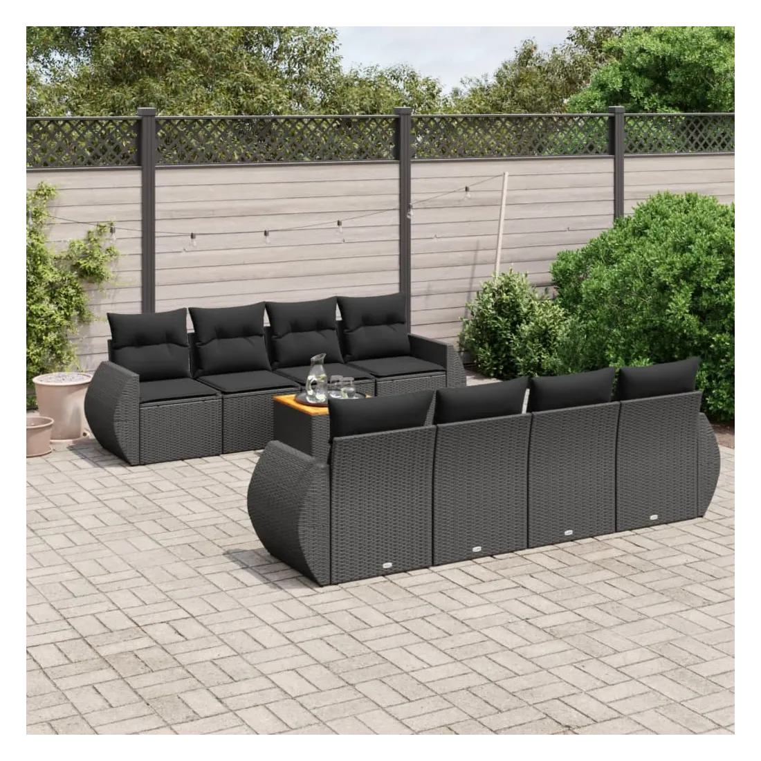 Cet ensemble de canapés de jardin est le complément parfait de votre arrière-cour, terrasse ou patio, offrant un espace confortable et accueillant pour discuter avec la famille et les amis ou simplement se détendre et profiter de l'extérieur. Matériau durable : la résine tressée, également connue sous le nom de poly rotin, est un matériau synthétique solide et nécessitant peu d'entretien qui ressemble au rotin naturel. Il est léger, facile à nettoyer et couramment utilisé pour les meubles d'extérieur en raison de sa durabilité et de ses propriétés de résistance aux intempéries.Dessus stable et facile à nettoyer : cette table de jardin a un dessus en bois d'acacia robuste, durable et facile à nettoyer avec un chiffon humide. Fonction de rangement avec sac résistant à l'eau : chaque siège de jardin dispose d'un espace de rangement sous l'assise, complété par un sac résistant à l'eau pour ranger les coussins, les jouets et d'autres objets. Les sacs intérieurs sont dotés d'un couvercle et peuvent être solidement fixés aux sièges à l'aide de bandes auto-agrippantes pour plus de stabilité.Expérience d'assise confortable : ce mobilier d'extérieur, doté de coussins épais, offre une expérience d'assise confortable.Conception modulaire : cet ensemble de meubles d'extérieur a une conception modulaire, ce qui le rend complètement flexible et facile à déplacer, afin que vous puissiez créer un agencement de meubles d'extérieur personnalisé. Bon à savoir :Pour que vos meubles d'extérieur restent beaux, nous vous recommandons de les protéger avec une housse imperméable.