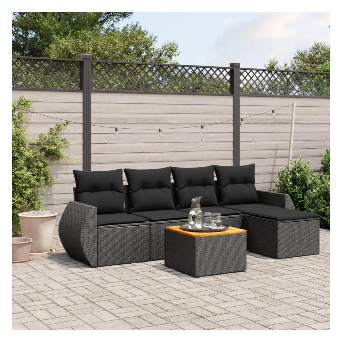 Cet ensemble de canapés de jardin est le complément parfait de votre arrière-cour, terrasse ou patio, offrant un espace confortable et accueillant pour discuter avec la famille et les amis ou simplement se détendre et profiter de l'extérieur. Matériau durable : la résine tressée, également connue sous le nom de poly rotin, est un matériau synthétique solide et nécessitant peu d'entretien qui ressemble au rotin naturel. Il est léger, facile à nettoyer et couramment utilisé pour les meubles d'extérieur en raison de sa durabilité et de ses propriétés de résistance aux intempéries.Dessus stable et facile à nettoyer : cette table de jardin a un dessus en bois d'acacia robuste, durable et facile à nettoyer avec un chiffon humide. Fonction de rangement avec sac résistant à l'eau : chaque siège de jardin dispose d'un espace de rangement sous l'assise, complété par un sac résistant à l'eau pour ranger les coussins, les jouets et d'autres objets. Les sacs intérieurs sont dotés d'un couvercle et peuvent être solidement fixés aux sièges à l'aide de bandes auto-agrippantes pour plus de stabilité.Expérience d'assise confortable : ce mobilier d'extérieur, doté de coussins épais, offre une expérience d'assise confortable.Conception modulaire : cet ensemble de meubles d'extérieur a une conception modulaire, ce qui le rend complètement flexible et facile à déplacer, afin que vous puissiez créer un agencement de meubles d'extérieur personnalisé. Bon à savoir :Pour que vos meubles d'extérieur restent beaux, nous vous recommandons de les protéger avec une housse imperméable.