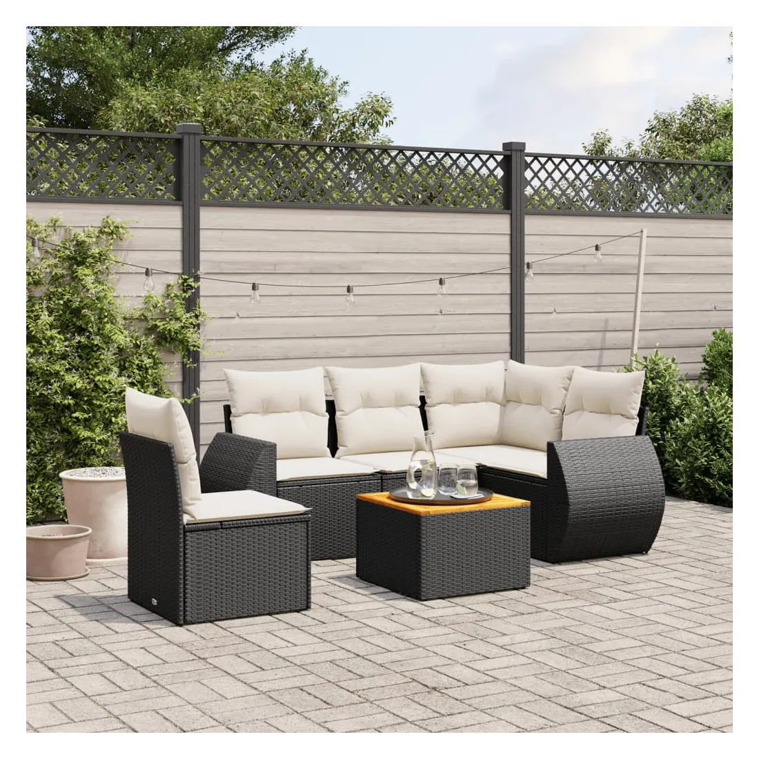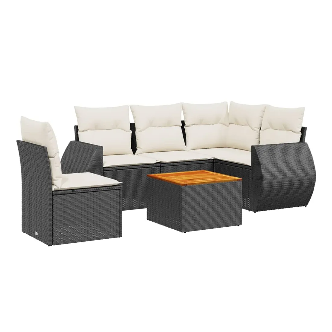 Cet ensemble de canapés de jardin est le complément parfait de votre arrière-cour, terrasse ou patio, offrant un espace confortable et accueillant pour discuter avec la famille et les amis ou simplement se détendre et profiter de l'extérieur. Matériau durable : la résine tressée, également connue sous le nom de poly rotin, est un matériau synthétique solide et nécessitant peu d'entretien qui ressemble au rotin naturel. Il est léger, facile à nettoyer et couramment utilisé pour les meubles d'extérieur en raison de sa durabilité et de ses propriétés de résistance aux intempéries.Dessus stable et facile à nettoyer : cette table de jardin a un dessus en bois d'acacia robuste, durable et facile à nettoyer avec un chiffon humide. Fonction de rangement avec sac résistant à l'eau : chaque siège de jardin dispose d'un espace de rangement sous l'assise, complété par un sac résistant à l'eau pour ranger les coussins, les jouets et d'autres objets. Les sacs intérieurs sont dotés d'un couvercle et peuvent être solidement fixés aux sièges à l'aide de bandes auto-agrippantes pour plus de stabilité.Expérience d'assise confortable : ce mobilier d'extérieur, doté de coussins épais, offre une expérience d'assise confortable.Conception modulaire : cet ensemble de meubles d'extérieur a une conception modulaire, ce qui le rend complètement flexible et facile à déplacer, afin que vous puissiez créer un agencement de meubles d'extérieur personnalisé. Bon à savoir :Pour que vos meubles d'extérieur restent beaux, nous vous recommandons de les protéger avec une housse imperméable.