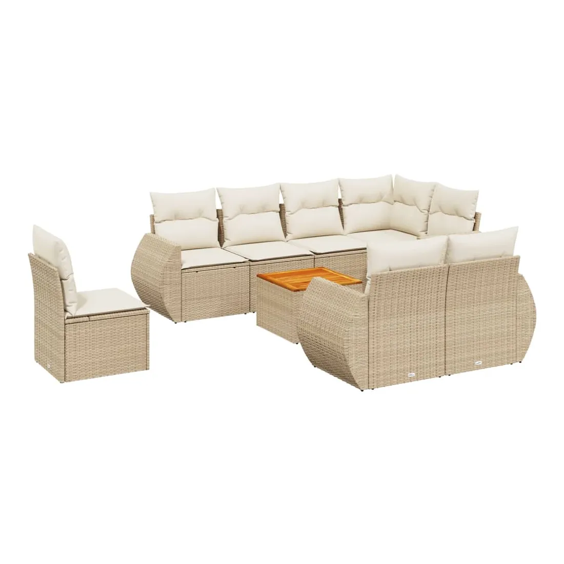 Cet ensemble de canapés de jardin est le complément parfait de votre arrière-cour, terrasse ou patio, offrant un espace confortable et accueillant pour discuter avec la famille et les amis ou simplement se détendre et profiter de l'extérieur. Matériau durable : la résine tressée, également connue sous le nom de poly rotin, est un matériau synthétique solide et nécessitant peu d'entretien qui ressemble au rotin naturel. Il est léger, facile à nettoyer et couramment utilisé pour les meubles d'extérieur en raison de sa durabilité et de ses propriétés de résistance aux intempéries.Dessus stable et facile à nettoyer : cette table de jardin a un dessus en bois d'acacia robuste, durable et facile à nettoyer avec un chiffon humide. Fonction de rangement avec sac résistant à l'eau : chaque siège de jardin dispose d'un espace de rangement sous l'assise, complété par un sac résistant à l'eau pour ranger les coussins, les jouets et d'autres objets. Les sacs intérieurs sont dotés d'un couvercle et peuvent être solidement fixés aux sièges à l'aide de bandes auto-agrippantes pour plus de stabilité.Expérience d'assise confortable : ce mobilier d'extérieur, doté de coussins épais, offre une expérience d'assise confortable.Conception modulaire : cet ensemble de meubles d'extérieur a une conception modulaire, ce qui le rend complètement flexible et facile à déplacer, afin que vous puissiez créer un agencement de meubles d'extérieur personnalisé. Bon à savoir :Pour que vos meubles d'extérieur restent beaux, nous vous recommandons de les protéger avec une housse imperméable.