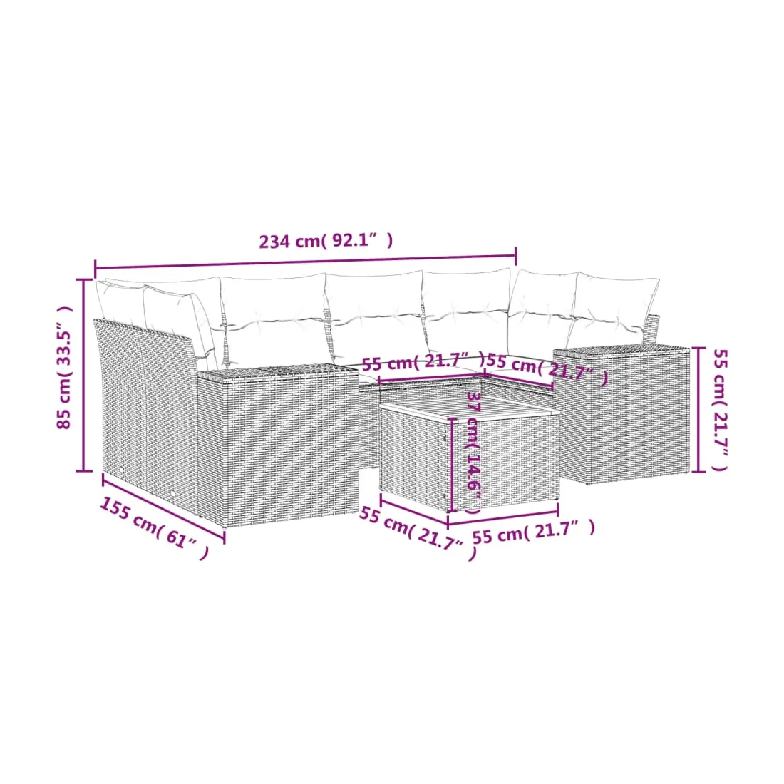 Cet ensemble de canapés de jardin est le complément parfait de votre arrière-cour, terrasse ou patio, offrant un espace confortable et accueillant pour discuter avec la famille et les amis ou simplement se détendre et profiter de l'extérieur. Matériau durable : la résine tressée, également connue sous le nom de poly rotin, est un matériau synthétique solide et nécessitant peu d'entretien qui ressemble au rotin naturel. Il est léger, facile à nettoyer et couramment utilisé pour les meubles d'extérieur en raison de sa durabilité et de ses propriétés de résistance aux intempéries.Dessus stable et facile à nettoyer : cette table de jardin a un dessus en bois d'acacia robuste, durable et facile à nettoyer avec un chiffon humide. Fonction de rangement avec sac résistant à l'eau : chaque siège de jardin dispose d'un espace de rangement sous l'assise, complété par un sac résistant à l'eau pour ranger les coussins, les jouets et d'autres objets. Les sacs intérieurs sont dotés d'un couvercle et peuvent être solidement fixés aux sièges à l'aide de bandes auto-agrippantes pour plus de stabilité.Expérience d'assise confortable : ce mobilier d'extérieur, doté de coussins épais, offre une expérience d'assise confortable.Conception modulaire : cet ensemble de meubles d'extérieur a une conception modulaire, ce qui le rend complètement flexible et facile à déplacer, afin que vous puissiez créer un agencement de meubles d'extérieur personnalisé. Bon à savoir :Pour que vos meubles d'extérieur restent beaux, nous vous recommandons de les protéger avec une housse imperméable.