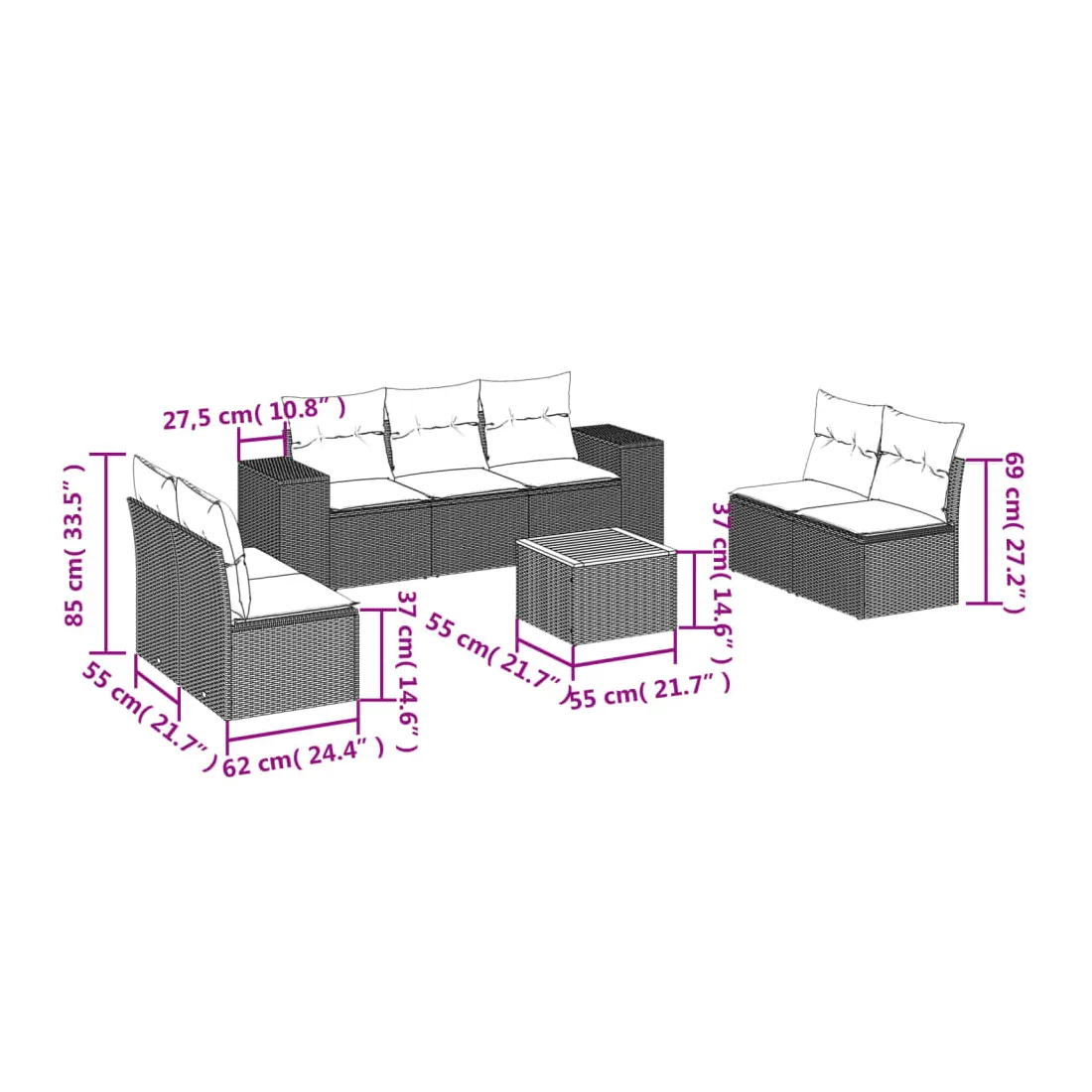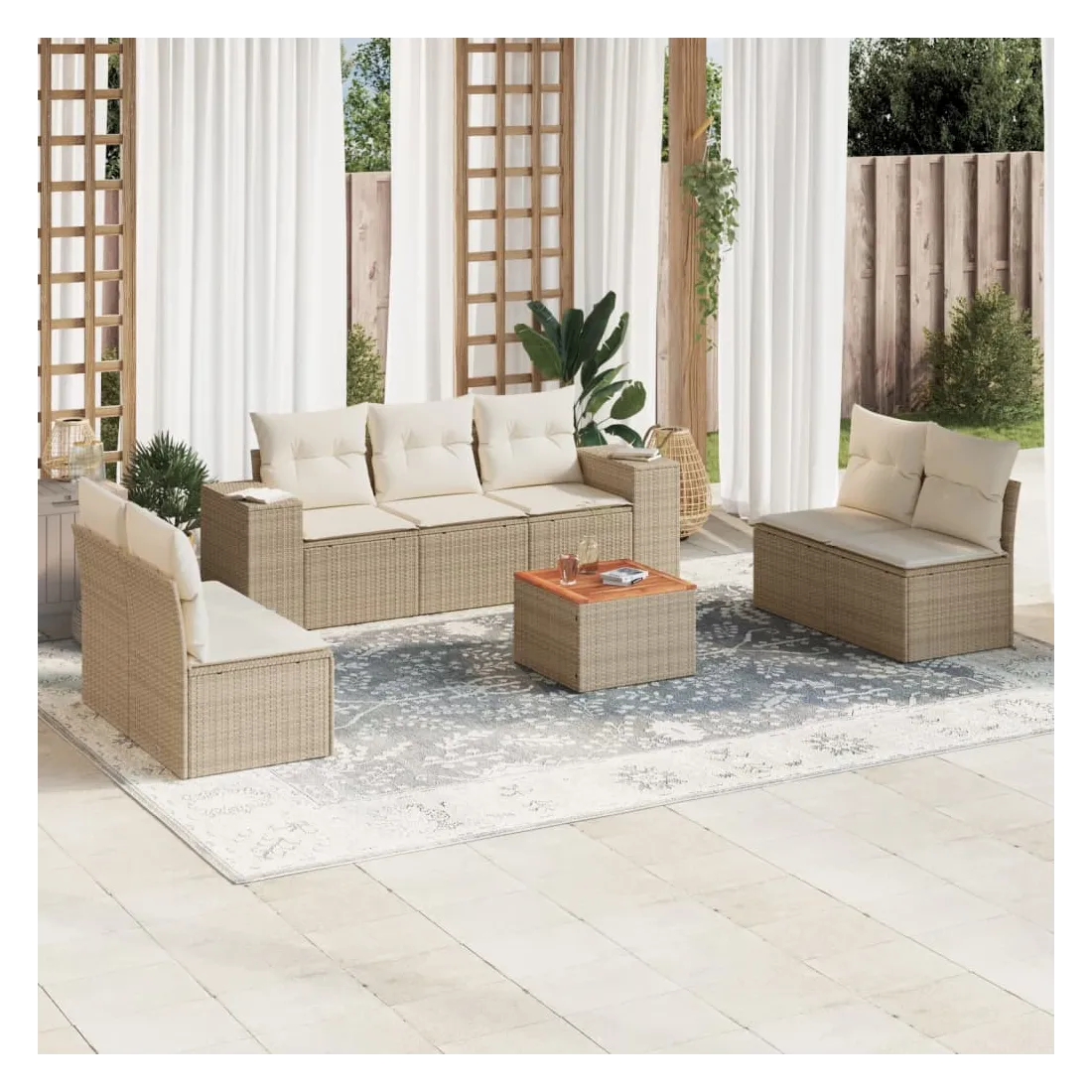 Cet ensemble de canapés de jardin est le complément parfait de votre arrière-cour, terrasse ou patio, offrant un espace confortable et accueillant pour discuter avec la famille et les amis ou simplement se détendre et profiter de l'extérieur. Matériau durable : la résine tressée, également connue sous le nom de poly rotin, est un matériau synthétique solide et nécessitant peu d'entretien qui ressemble au rotin naturel. Il est léger, facile à nettoyer et couramment utilisé pour les meubles d'extérieur en raison de sa durabilité et de ses propriétés de résistance aux intempéries. Fonction de rangement avec sac résistant à l'eau : chaque siège de jardin dispose d'un espace de rangement sous l'assise, complété par un sac résistant à l'eau pour ranger les coussins, les jouets et d'autres objets. Les sacs intérieurs sont dotés d'un couvercle et peuvent être solidement fixés aux sièges à l'aide de bandes auto-agrippantes pour plus de stabilité. Dessus stable et facile à nettoyer : cette table de jardin a un dessus en bois d'acacia robuste, durable et facile à nettoyer avec un chiffon humide. Expérience d'assise confortable : ce mobilier d'extérieur, doté de coussins épais, offre une expérience d'assise confortable. Conception modulaire : cet ensemble de meubles d'extérieur a une conception modulaire, ce qui le rend complètement flexible et facile à déplacer, afin que vous puissiez créer un agencement de meubles d'extérieur personnalisé. Bon à savoir :Pour que vos meubles d'extérieur restent beaux, nous vous recommandons de les protéger avec une housse imperméable.
