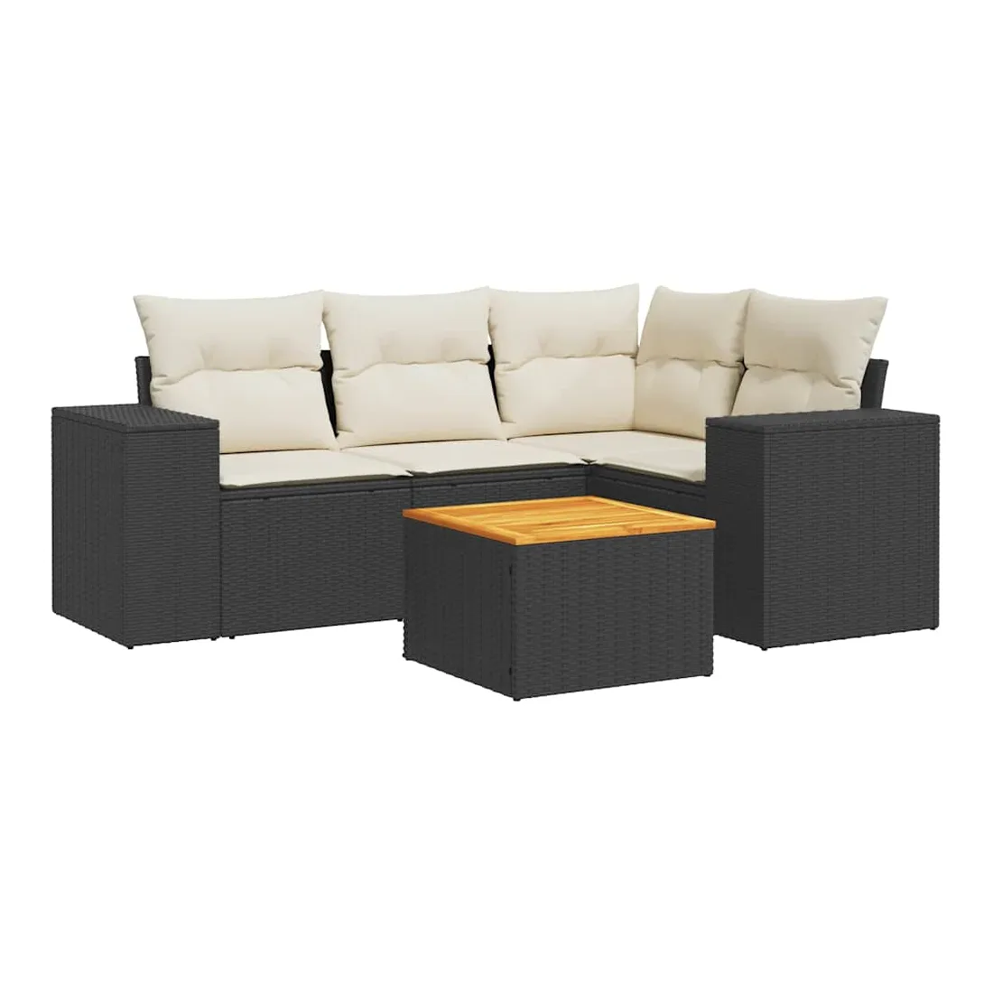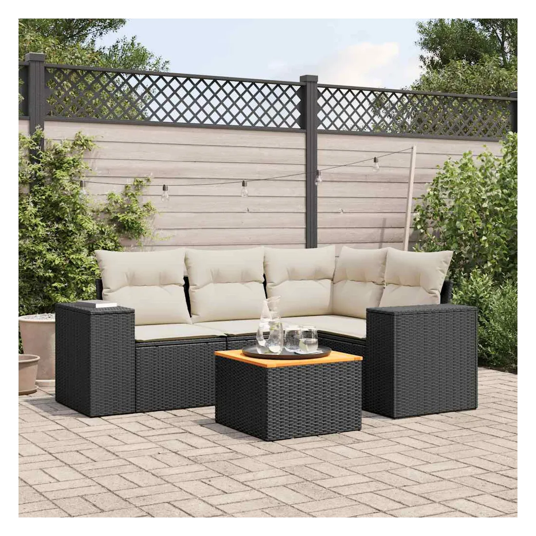 Cet ensemble de canapés de jardin est le complément parfait de votre arrière-cour, terrasse ou patio, offrant un espace confortable et accueillant pour discuter avec la famille et les amis ou simplement se détendre et profiter de l'extérieur. Matériau durable : la résine tressée, également connue sous le nom de poly rotin, est un matériau synthétique solide et nécessitant peu d'entretien qui ressemble au rotin naturel. Il est léger, facile à nettoyer et couramment utilisé pour les meubles d'extérieur en raison de sa durabilité et de ses propriétés de résistance aux intempéries.Dessus stable et facile à nettoyer : cette table de jardin a un dessus en bois d'acacia robuste, durable et facile à nettoyer avec un chiffon humide. Fonction de rangement avec sac résistant à l'eau : chaque siège de jardin dispose d'un espace de rangement sous l'assise, complété par un sac résistant à l'eau pour ranger les coussins, les jouets et d'autres objets. Les sacs intérieurs sont dotés d'un couvercle et peuvent être solidement fixés aux sièges à l'aide de bandes auto-agrippantes pour plus de stabilité.Expérience d'assise confortable : ce mobilier d'extérieur, doté de coussins épais, offre une expérience d'assise confortable.Conception modulaire : cet ensemble de meubles d'extérieur a une conception modulaire, ce qui le rend complètement flexible et facile à déplacer, afin que vous puissiez créer un agencement de meubles d'extérieur personnalisé. Bon à savoir :Pour que vos meubles d'extérieur restent beaux, nous vous recommandons de les protéger avec une housse imperméable.
