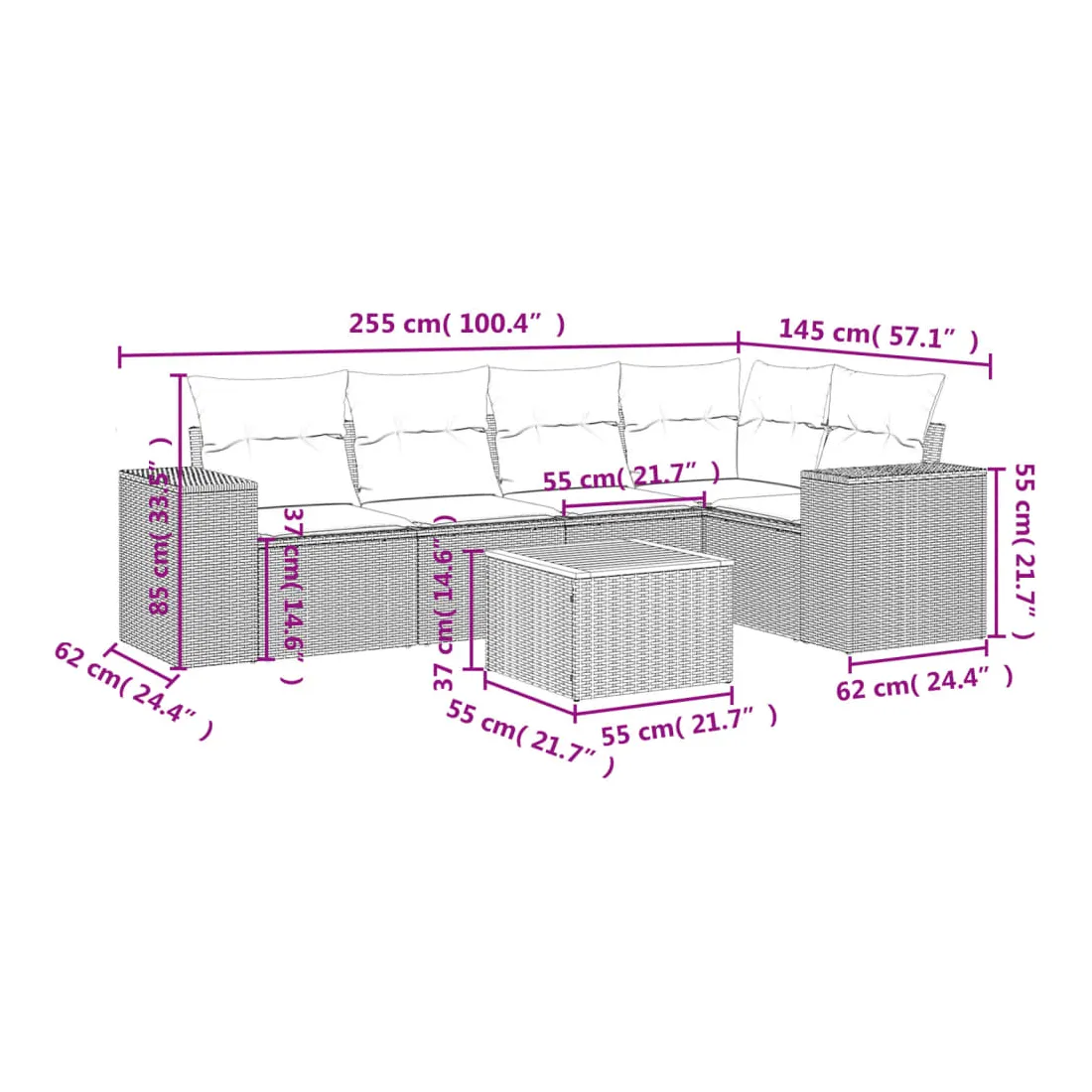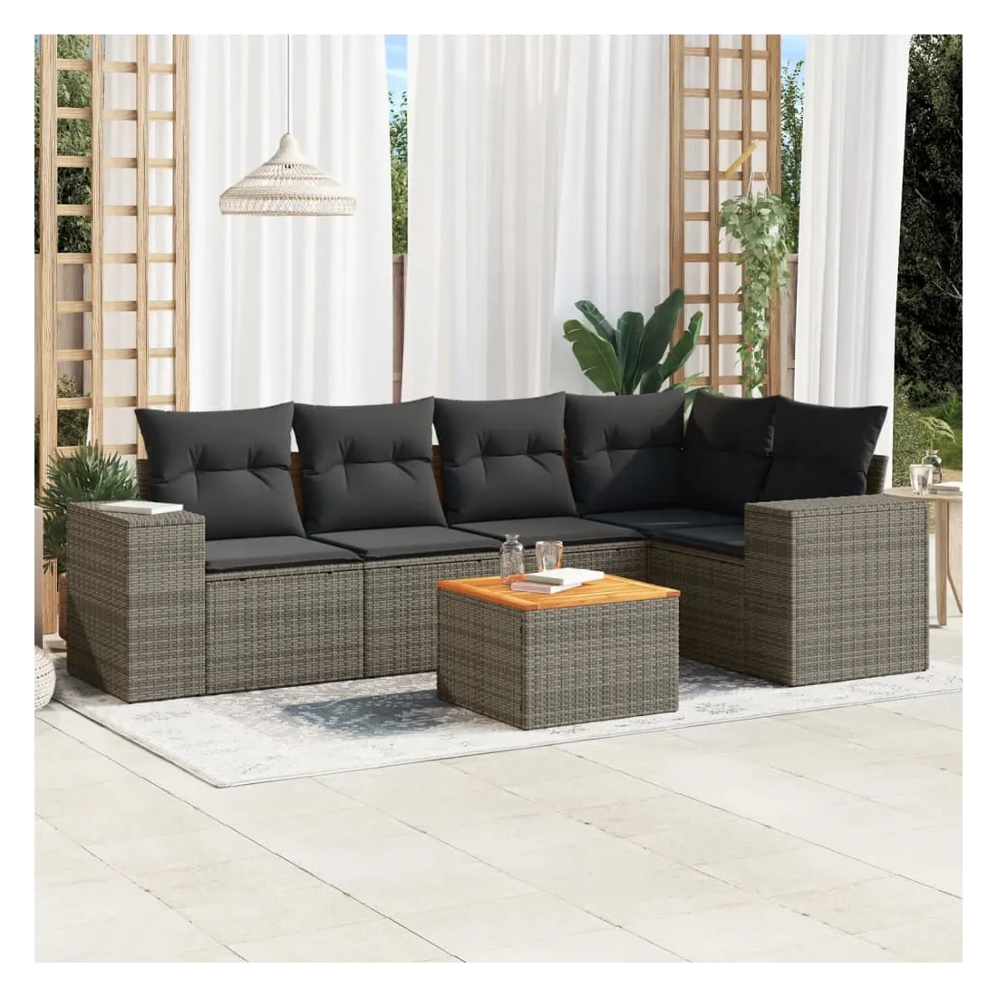 Salon de jardin 6 pcs avec coussins gris résine tressée