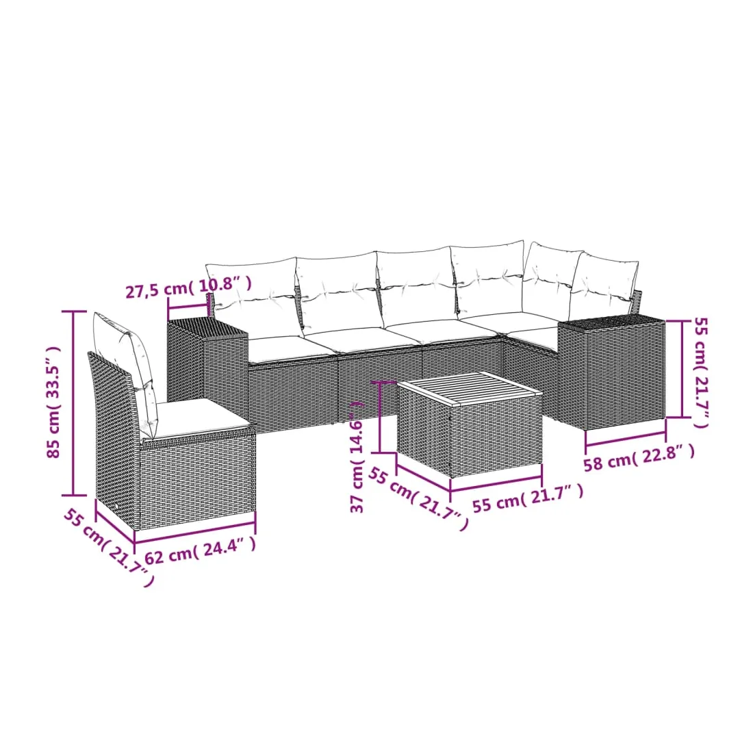 - Dimensions : 55 x 55 x 37 cm (L x l x H)