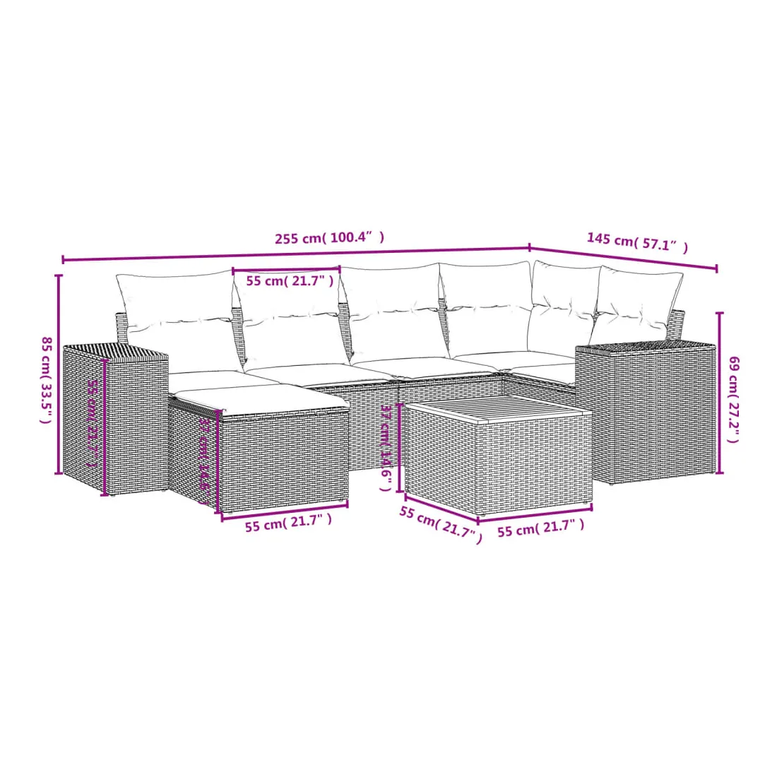 - Dimensions du coussin de dossier : 55 x 45 x 13 cm (L x l x é)