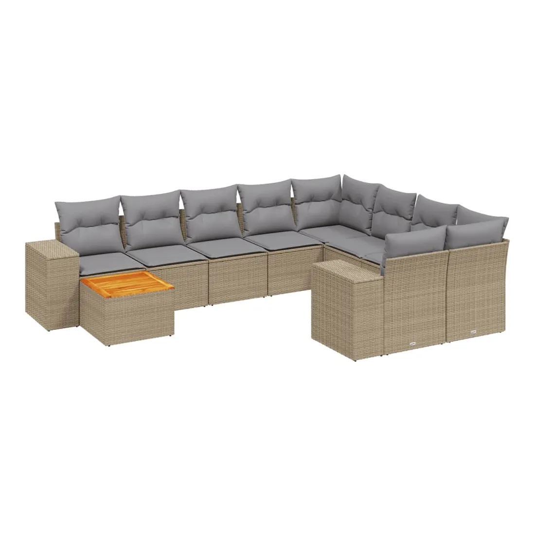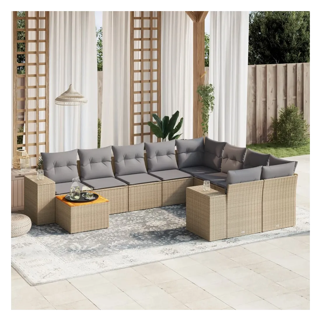 Salon de jardin avec coussins 10 pcs beige résine tressée