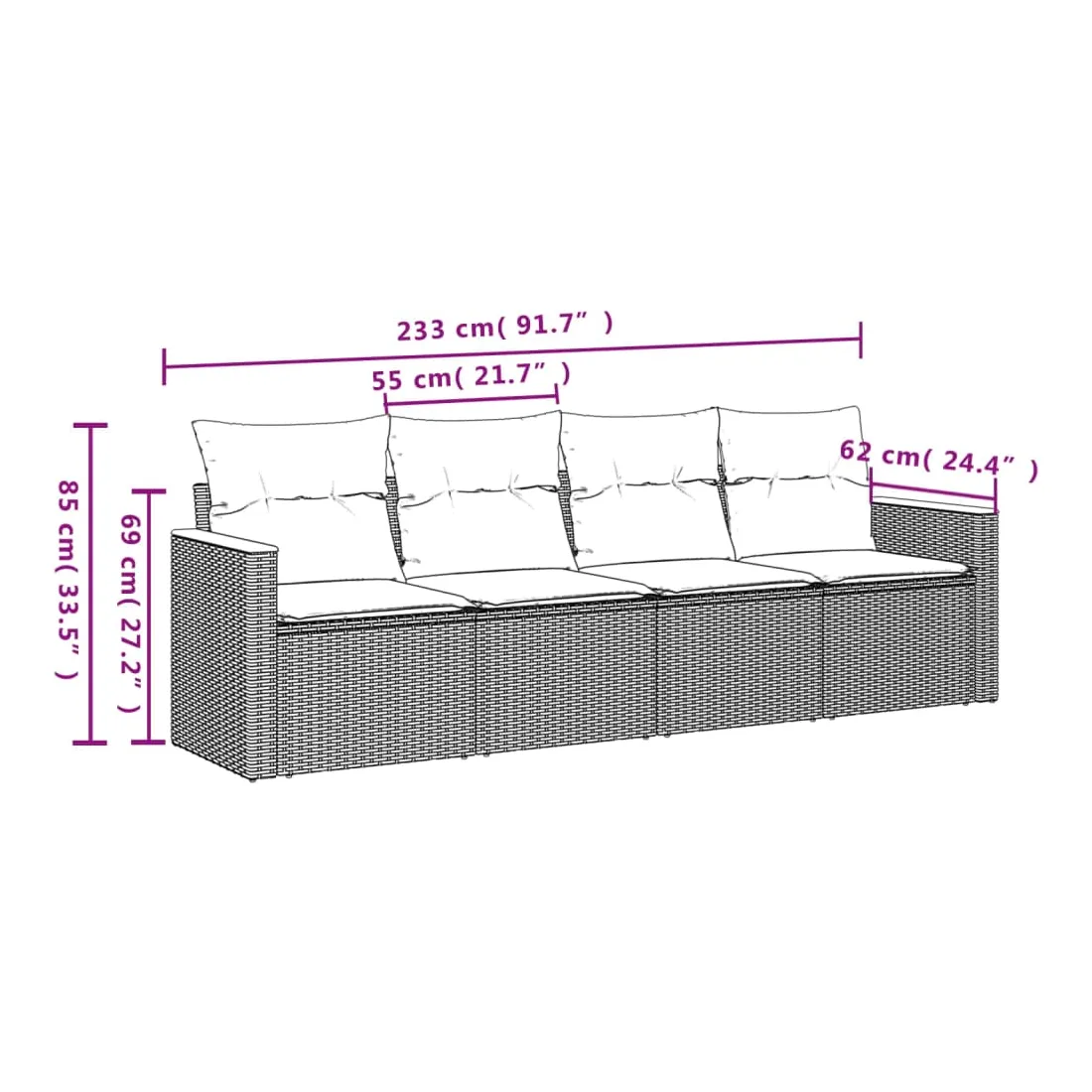 - Dimensions du coussin de siège : 55 x 55 x 3 cm (l x P x é)