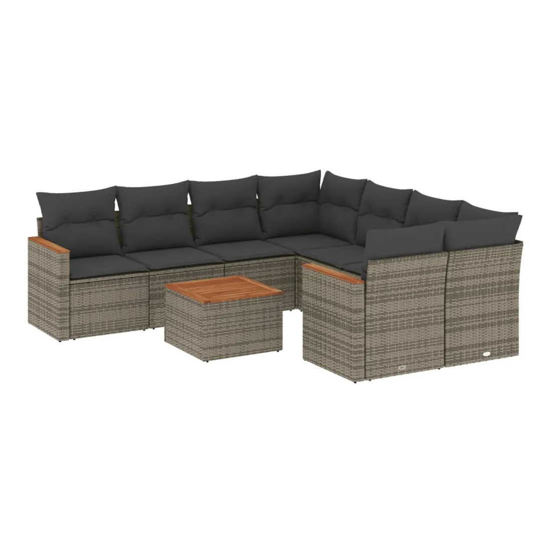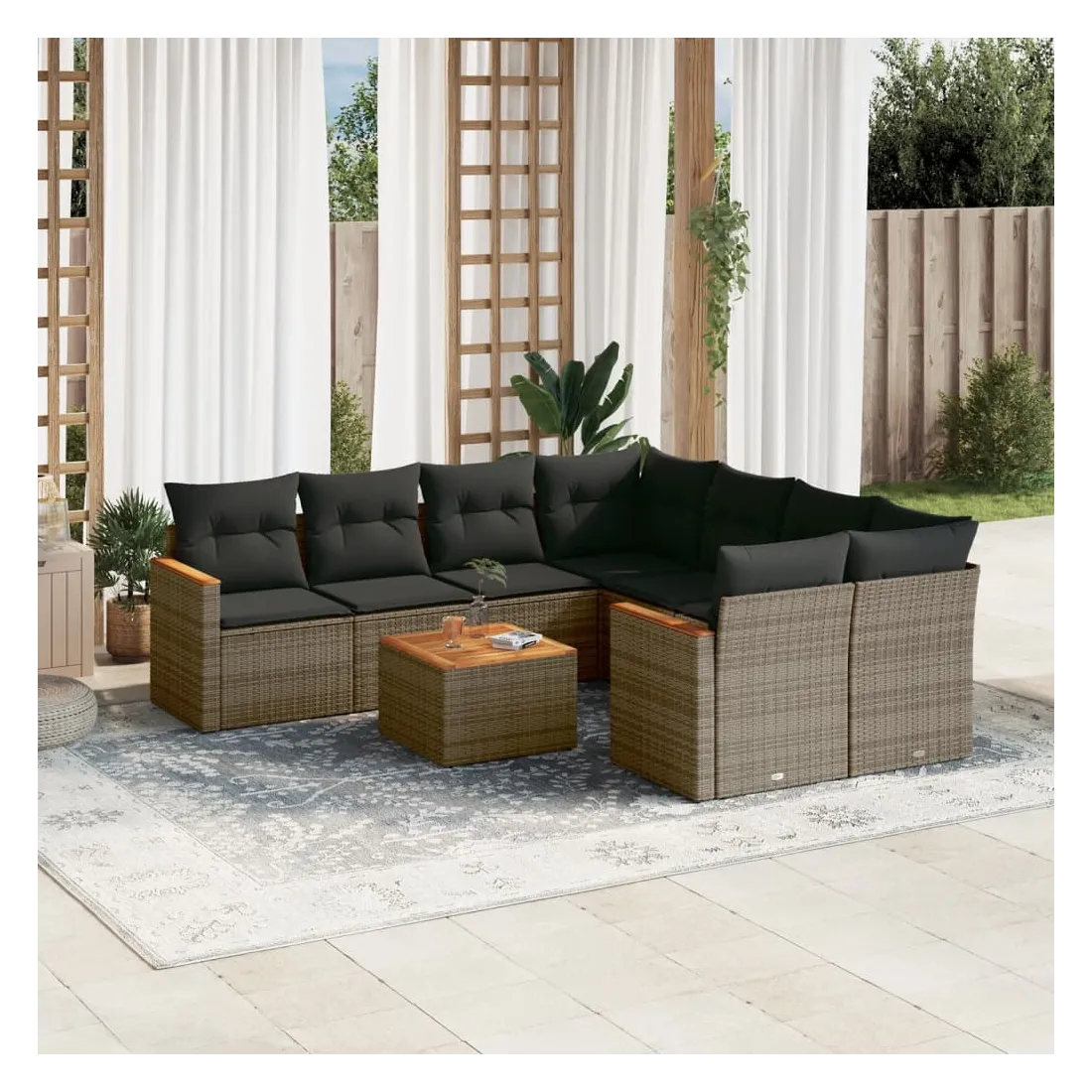 Cet ensemble de canapés de jardin est le complément parfait de votre arrière-cour, terrasse ou patio, offrant un espace confortable et accueillant pour discuter avec la famille et les amis ou simplement se détendre et profiter de l'extérieur. Matériau durable : la résine tressée, également connue sous le nom de poly rotin, est un matériau synthétique solide et nécessitant peu d'entretien qui ressemble au rotin naturel. Il est léger, facile à nettoyer et couramment utilisé pour les meubles d'extérieur en raison de sa durabilité et de ses propriétés de résistance aux intempéries.Fonction de rangement avec sac résistant à l'eau : le mobilier de jardin dispose d'un espace de rangement sous l'assise, complété par un sac résistant à l'eau pour ranger coussins, jouets et autres objets. Le sac intérieur peut être solidement fixé au mobilier d'extérieur grâce à des attaches auto-agrippantes pour plus de stabilité.Dessus stable et facile à nettoyer : cette table de jardin a un dessus en bois d'acacia robuste, durable et facile à nettoyer avec un chiffon humide.Housse amovible et lavable : ces coussins de siège sont dotés de housses amovibles pour un lavage et un entretien faciles.Conception modulaire : cet ensemble de meubles d'extérieur a une conception modulaire, ce qui le rend complètement flexible et facile à déplacer, afin que vous puissiez créer un agencement de meubles d'extérieur personnalisé. Bon à savoir :Pour que vos meubles d'extérieur restent beaux, nous vous recommandons de les protéger avec une housse imperméable.