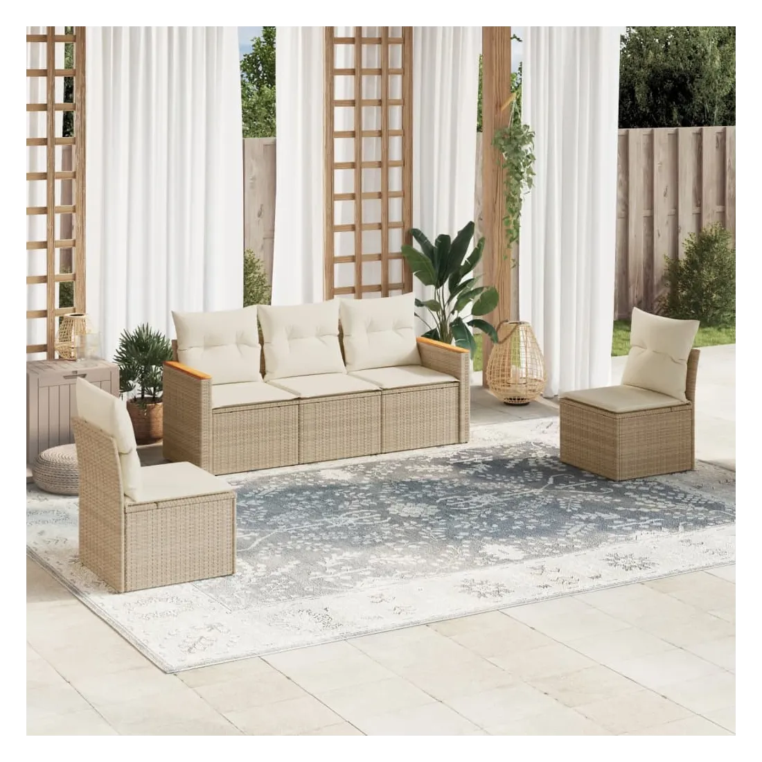 Cet ensemble de canapés de jardin est le complément parfait de votre arrière-cour, terrasse ou patio, offrant un espace confortable et accueillant pour discuter avec la famille et les amis ou simplement se détendre et profiter de l'extérieur. Matériau durable : la résine tressée, également connue sous le nom de poly rotin, est un matériau synthétique solide et nécessitant peu d'entretien qui ressemble au rotin naturel. Il est léger, facile à nettoyer et couramment utilisé pour les meubles d'extérieur en raison de sa durabilité et de ses propriétés de résistance aux intempéries.Fonction de rangement avec sac résistant à l'eau : le mobilier de jardin dispose d'un espace de rangement sous l'assise, complété par un sac résistant à l'eau pour ranger coussins, jouets et autres objets. Le sac intérieur peut être solidement fixé au mobilier d'extérieur grâce à des attaches auto-agrippantes pour plus de stabilité.Housse amovible et lavable : ces coussins de siège sont dotés de housses amovibles pour un lavage et un entretien faciles.Conception modulaire : cet ensemble de meubles d'extérieur a une conception modulaire, ce qui le rend complètement flexible et facile à déplacer, afin que vous puissiez créer un agencement de meubles d'extérieur personnalisé. Bon à savoir :Pour que vos meubles d'extérieur restent beaux, nous vous recommandons de les protéger avec une housse imperméable.