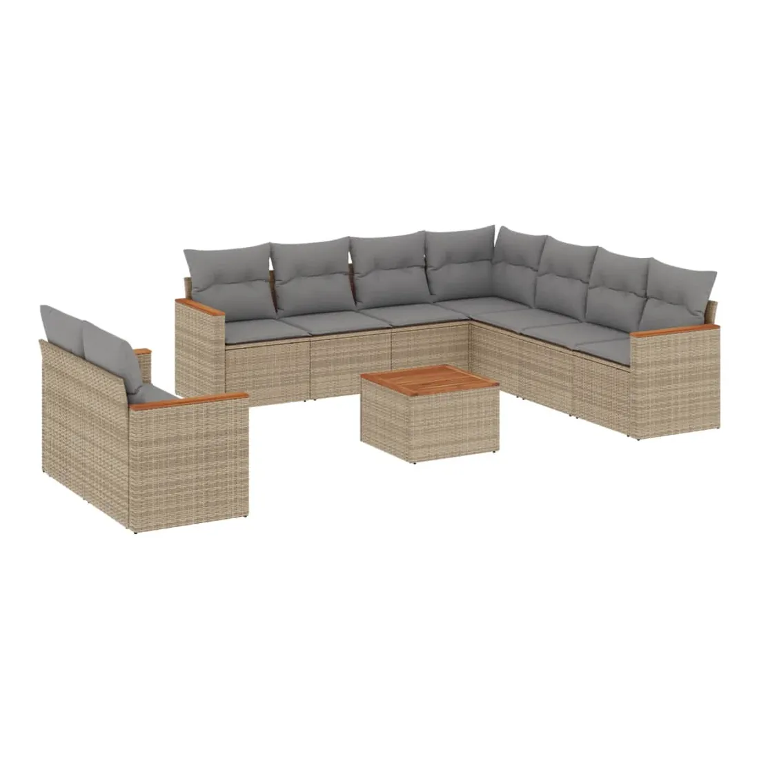 Cet ensemble de canapés de jardin est le complément parfait de votre arrière-cour, terrasse ou patio, offrant un espace confortable et accueillant pour discuter avec la famille et les amis ou simplement se détendre et profiter de l'extérieur. Matériau durable : la résine tressée, également connue sous le nom de poly rotin, est un matériau synthétique solide et nécessitant peu d'entretien qui ressemble au rotin naturel. Il est léger, facile à nettoyer et couramment utilisé pour les meubles d'extérieur en raison de sa durabilité et de ses propriétés de résistance aux intempéries.Fonction de rangement avec sac résistant à l'eau : le mobilier de jardin dispose d'un espace de rangement sous l'assise, complété par un sac résistant à l'eau pour ranger coussins, jouets et autres objets. Le sac intérieur peut être solidement fixé au mobilier d'extérieur grâce à des attaches auto-agrippantes pour plus de stabilité.Dessus stable et facile à nettoyer : cette table de jardin a un dessus en bois d'acacia robuste, durable et facile à nettoyer avec un chiffon humide.Housse amovible et lavable : ces coussins de siège sont dotés de housses amovibles pour un lavage et un entretien faciles.Conception modulaire : cet ensemble de meubles d'extérieur a une conception modulaire, ce qui le rend complètement flexible et facile à déplacer, afin que vous puissiez créer un agencement de meubles d'extérieur personnalisé. Bon à savoir :Pour que vos meubles d'extérieur restent beaux, nous vous recommandons de les protéger avec une housse imperméable.