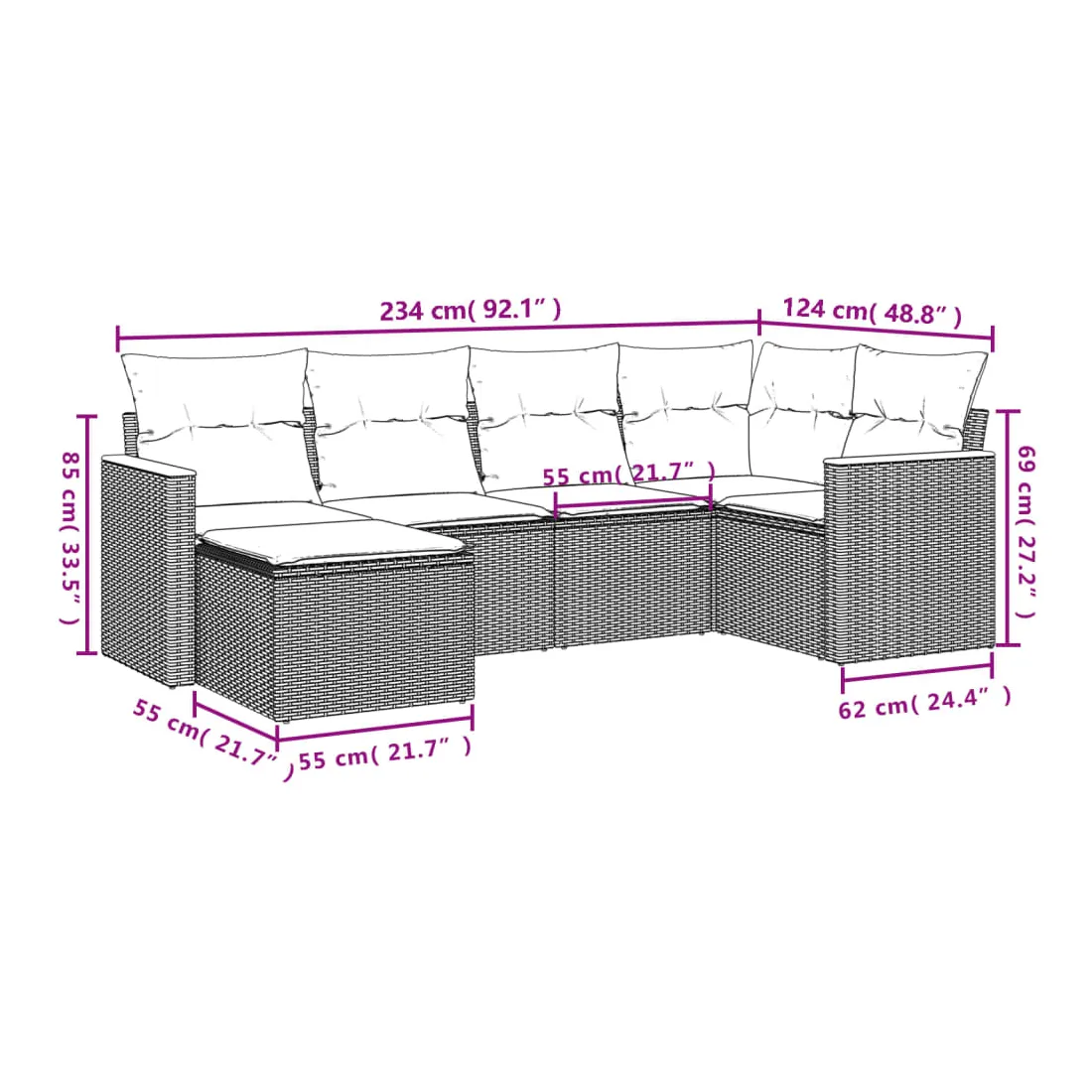- Dimensions du coussin de dossier : 55 x 45 x 13 cm (L x l x é)