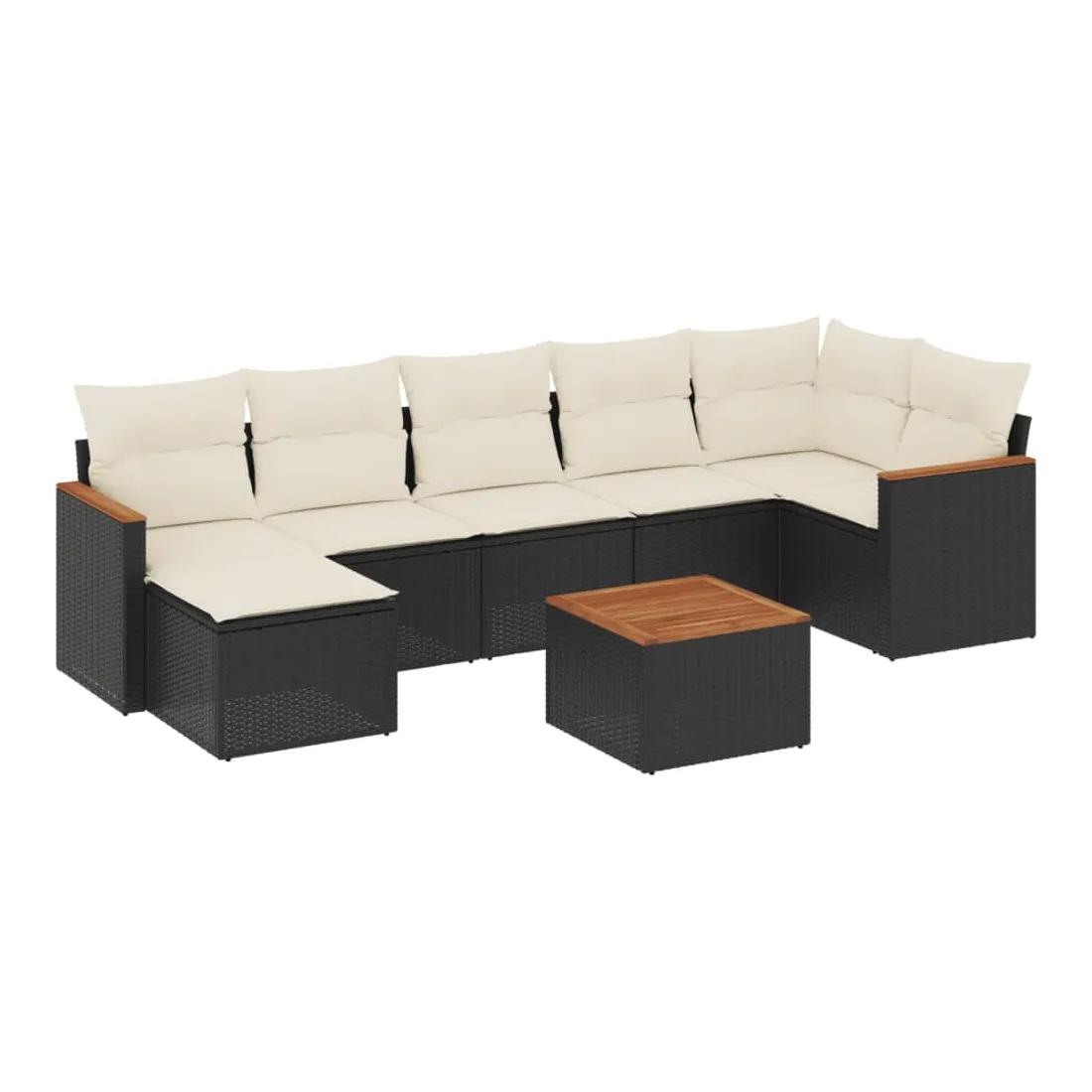 Salon de jardin 8 pcs avec coussins noir résine tressée