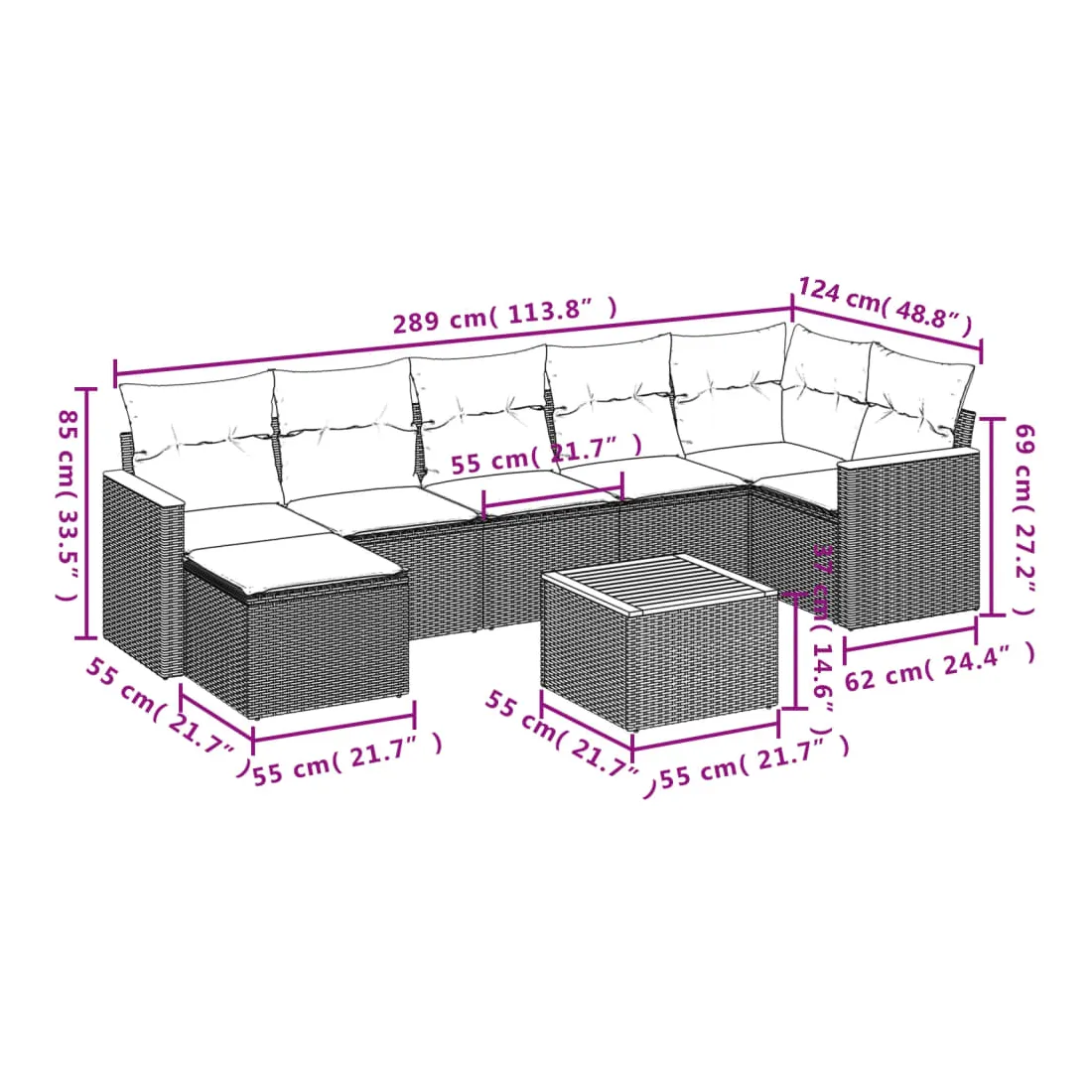 • 7 x coussin de siège avec housse amovible et lavable