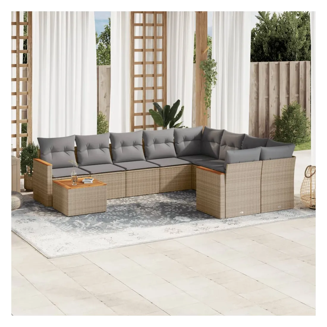 Salon de jardin avec coussins 10 pcs beige résine tressée