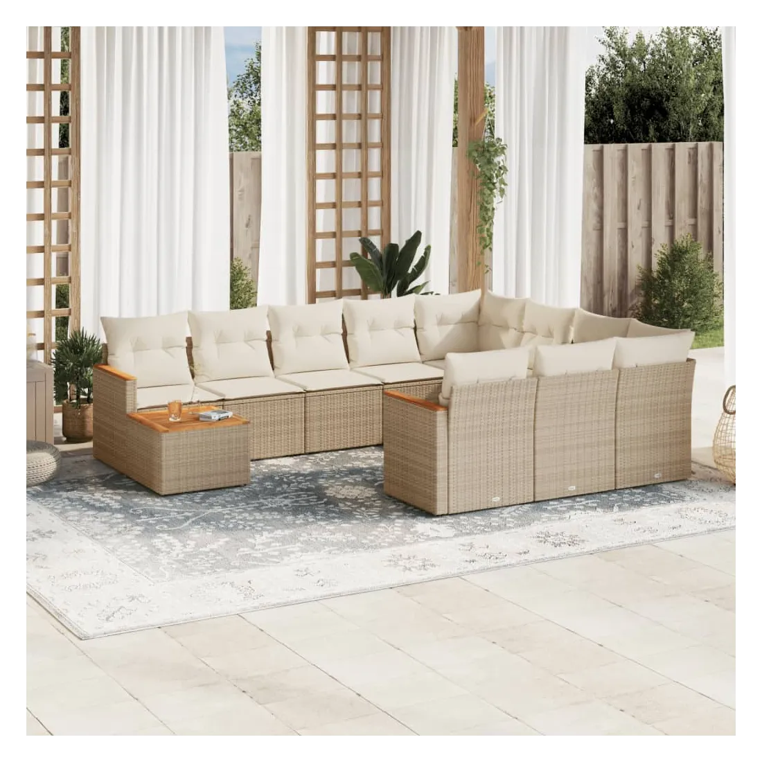 Salon de jardin 11 pcs avec coussins beige résine tressée