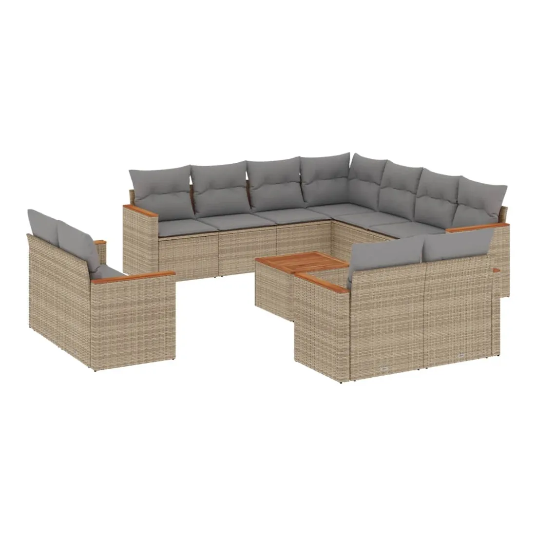 Cet ensemble de canapés de jardin est le complément parfait de votre arrière-cour, terrasse ou patio, offrant un espace confortable et accueillant pour discuter avec la famille et les amis ou simplement se détendre et profiter de l'extérieur. Matériau durable : la résine tressée, également connue sous le nom de poly rotin, est un matériau synthétique solide et nécessitant peu d'entretien qui ressemble au rotin naturel. Il est léger, facile à nettoyer et couramment utilisé pour les meubles d'extérieur en raison de sa durabilité et de ses propriétés de résistance aux intempéries.Fonction de rangement avec sac résistant à l'eau : le mobilier de jardin dispose d'un espace de rangement sous l'assise, complété par un sac résistant à l'eau pour ranger coussins, jouets et autres objets. Le sac intérieur peut être solidement fixé au mobilier d'extérieur grâce à des attaches auto-agrippantes pour plus de stabilité.Dessus stable et facile à nettoyer : cette table de jardin a un dessus en bois d'acacia robuste, durable et facile à nettoyer avec un chiffon humide.Housse amovible et lavable : ces coussins de siège sont dotés de housses amovibles pour un lavage et un entretien faciles.Conception modulaire : cet ensemble de meubles d'extérieur a une conception modulaire, ce qui le rend complètement flexible et facile à déplacer, afin que vous puissiez créer un agencement de meubles d'extérieur personnalisé. Bon à savoir :Pour que vos meubles d'extérieur restent beaux, nous vous recommandons de les protéger avec une housse imperméable.