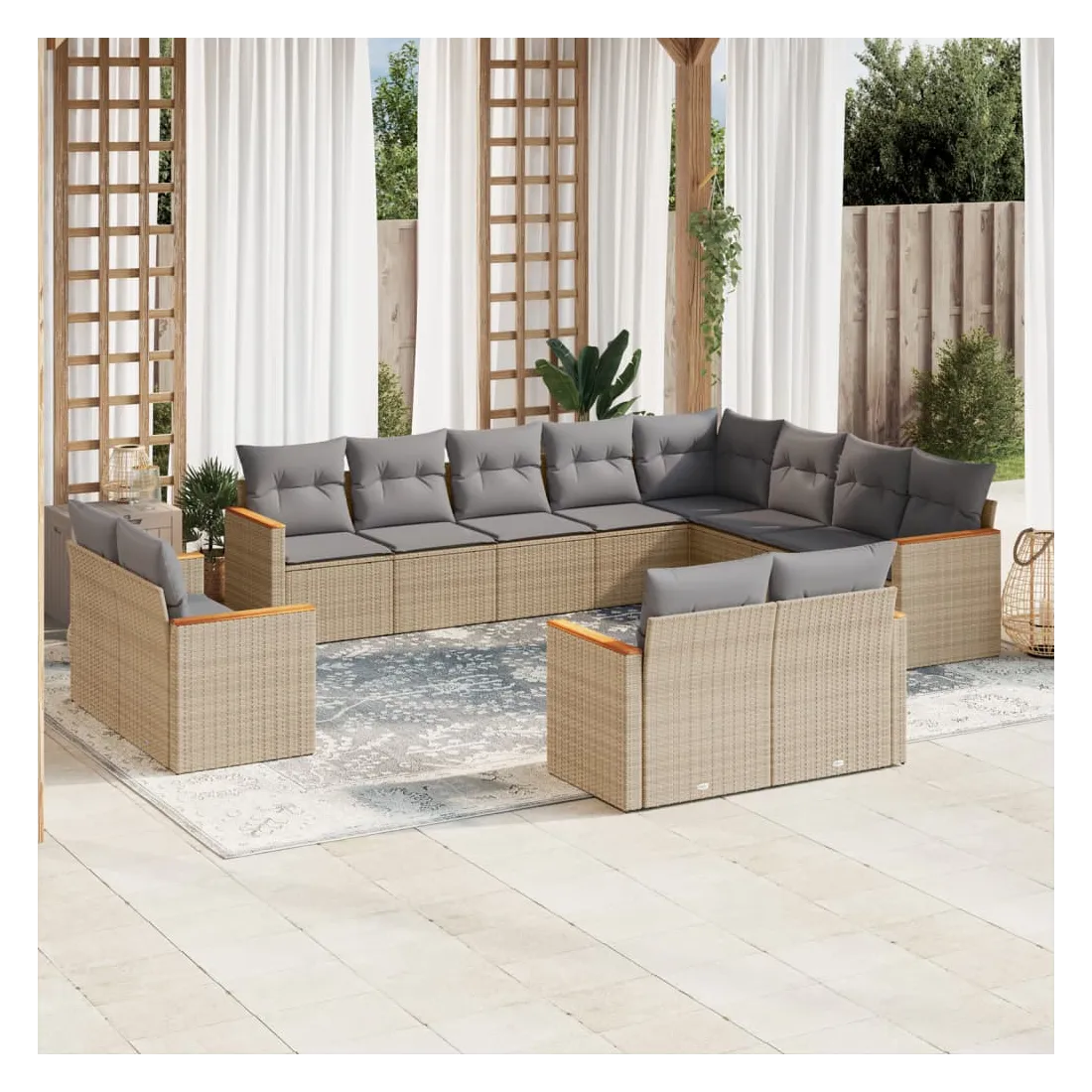 Cet ensemble de canapés de jardin est le complément parfait de votre arrière-cour, terrasse ou patio, offrant un espace confortable et accueillant pour discuter avec la famille et les amis ou simplement se détendre et profiter de l'extérieur. Matériau durable : la résine tressée, également connue sous le nom de poly rotin, est un matériau synthétique solide et nécessitant peu d'entretien qui ressemble au rotin naturel. Il est léger, facile à nettoyer et couramment utilisé pour les meubles d'extérieur en raison de sa durabilité et de ses propriétés de résistance aux intempéries.Fonction de rangement avec sac résistant à l'eau : le mobilier de jardin dispose d'un espace de rangement sous l'assise, complété par un sac résistant à l'eau pour ranger coussins, jouets et autres objets. Le sac intérieur peut être solidement fixé au mobilier d'extérieur grâce à des attaches auto-agrippantes pour plus de stabilité.Housse amovible et lavable : ces coussins de siège sont dotés de housses amovibles pour un lavage et un entretien faciles.Conception modulaire : cet ensemble de meubles d'extérieur a une conception modulaire, ce qui le rend complètement flexible et facile à déplacer, afin que vous puissiez créer un agencement de meubles d'extérieur personnalisé. Bon à savoir :Pour que vos meubles d'extérieur restent beaux, nous vous recommandons de les protéger avec une housse imperméable.