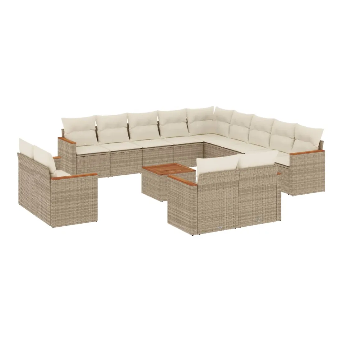 Cet ensemble de canapés de jardin est le complément parfait de votre arrière-cour, terrasse ou patio, offrant un espace confortable et accueillant pour discuter avec la famille et les amis ou simplement se détendre et profiter de l'extérieur. Matériau durable : la résine tressée, également connue sous le nom de poly rotin, est un matériau synthétique solide et nécessitant peu d'entretien qui ressemble au rotin naturel. Il est léger, facile à nettoyer et couramment utilisé pour les meubles d'extérieur en raison de sa durabilité et de ses propriétés de résistance aux intempéries.Fonction de rangement avec sac résistant à l'eau : le mobilier de jardin dispose d'un espace de rangement sous l'assise, complété par un sac résistant à l'eau pour ranger coussins, jouets et autres objets. Le sac intérieur peut être solidement fixé au mobilier d'extérieur grâce à des attaches auto-agrippantes pour plus de stabilité.Dessus stable et facile à nettoyer : cette table de jardin a un dessus en bois d'acacia robuste, durable et facile à nettoyer avec un chiffon humide.Housse amovible et lavable : ces coussins de siège sont dotés de housses amovibles pour un lavage et un entretien faciles.Conception modulaire : cet ensemble de meubles d'extérieur a une conception modulaire, ce qui le rend complètement flexible et facile à déplacer, afin que vous puissiez créer un agencement de meubles d'extérieur personnalisé. Bon à savoir :Pour que vos meubles d'extérieur restent beaux, nous vous recommandons de les protéger avec une housse imperméable.