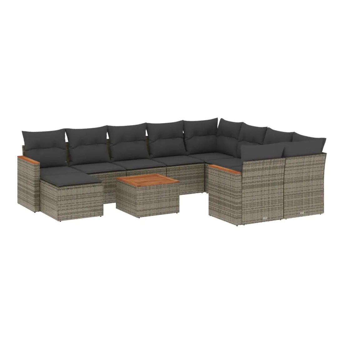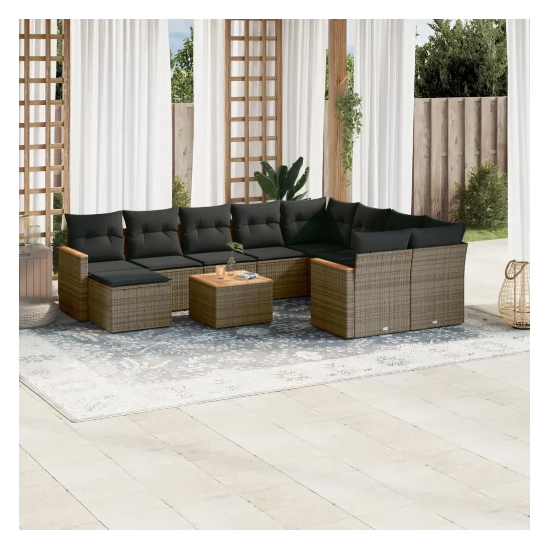 Cet ensemble de canapés de jardin est le complément parfait de votre arrière-cour, terrasse ou patio, offrant un espace confortable et accueillant pour discuter avec la famille et les amis ou simplement se détendre et profiter de l'extérieur. Matériau durable : la résine tressée, également connue sous le nom de poly rotin, est un matériau synthétique solide et nécessitant peu d'entretien qui ressemble au rotin naturel. Il est léger, facile à nettoyer et couramment utilisé pour les meubles d'extérieur en raison de sa durabilité et de ses propriétés de résistance aux intempéries.Fonction de rangement avec sac résistant à l'eau : le mobilier de jardin dispose d'un espace de rangement sous l'assise, complété par un sac résistant à l'eau pour ranger coussins, jouets et autres objets. Le sac intérieur peut être solidement fixé au mobilier d'extérieur grâce à des attaches auto-agrippantes pour plus de stabilité.Dessus stable et facile à nettoyer : cette table de jardin a un dessus en bois d'acacia robuste, durable et facile à nettoyer avec un chiffon humide.Housse amovible et lavable : ces coussins de siège sont dotés de housses amovibles pour un lavage et un entretien faciles.Conception modulaire : cet ensemble de meubles d'extérieur a une conception modulaire, ce qui le rend complètement flexible et facile à déplacer, afin que vous puissiez créer un agencement de meubles d'extérieur personnalisé. Bon à savoir :Pour que vos meubles d'extérieur restent beaux, nous vous recommandons de les protéger avec une housse imperméable.