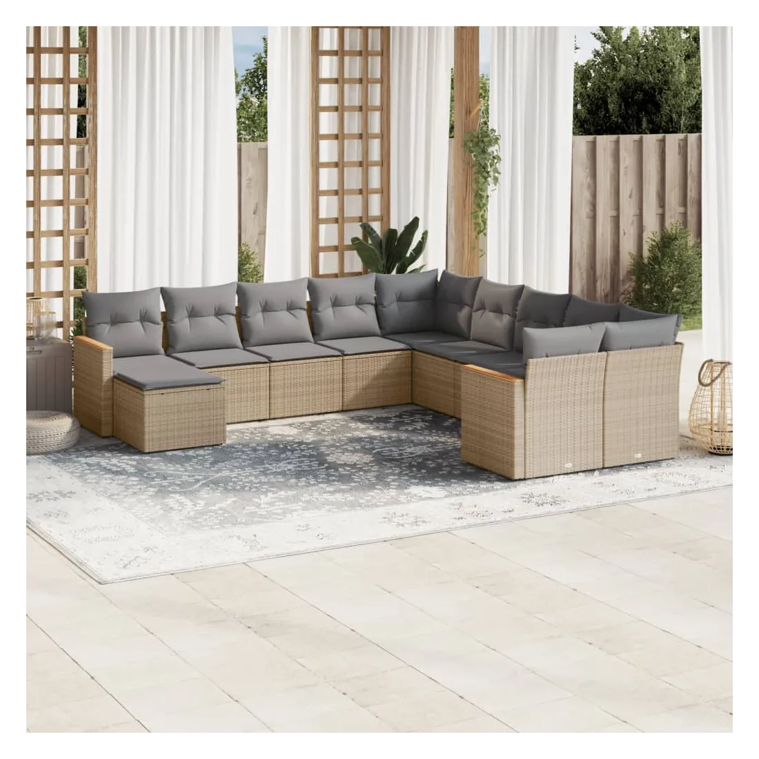 Cet ensemble de canapés de jardin est le complément parfait de votre arrière-cour, terrasse ou patio, offrant un espace confortable et accueillant pour discuter avec la famille et les amis ou simplement se détendre et profiter de l'extérieur. Matériau durable : la résine tressée, également connue sous le nom de poly rotin, est un matériau synthétique solide et nécessitant peu d'entretien qui ressemble au rotin naturel. Il est léger, facile à nettoyer et couramment utilisé pour les meubles d'extérieur en raison de sa durabilité et de ses propriétés de résistance aux intempéries.Fonction de rangement avec sac résistant à l'eau : le mobilier de jardin dispose d'un espace de rangement sous l'assise, complété par un sac résistant à l'eau pour ranger coussins, jouets et autres objets. Le sac intérieur peut être solidement fixé au mobilier d'extérieur grâce à des attaches auto-agrippantes pour plus de stabilité.Housse amovible et lavable : ces coussins de siège sont dotés de housses amovibles pour un lavage et un entretien faciles.Conception modulaire : cet ensemble de meubles d'extérieur a une conception modulaire, ce qui le rend complètement flexible et facile à déplacer, afin que vous puissiez créer un agencement de meubles d'extérieur personnalisé. Bon à savoir :Pour que vos meubles d'extérieur restent beaux, nous vous recommandons de les protéger avec une housse imperméable.