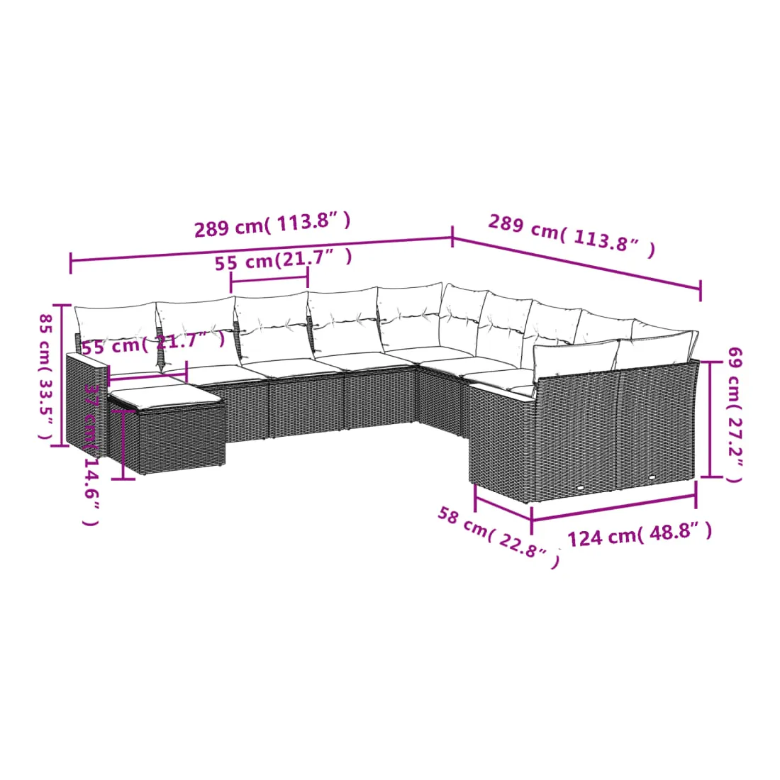 - Dimensions du coussin de dossier : 55 x 45 x 13 cm (L x l x é)