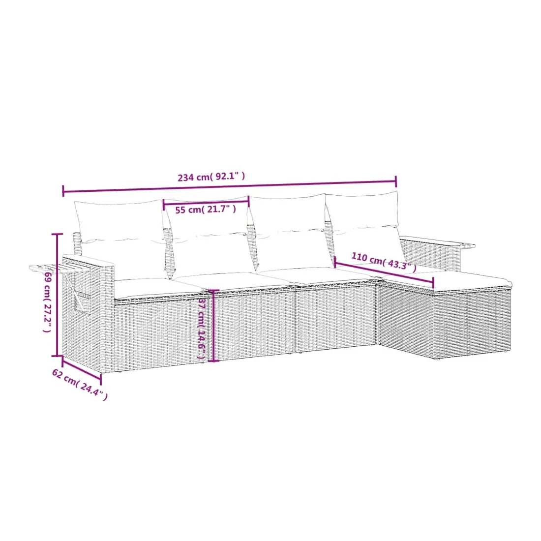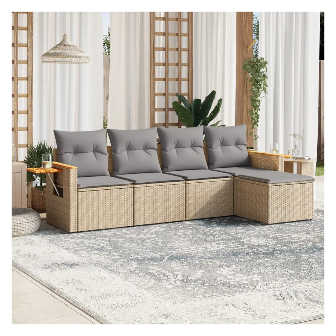 Cet ensemble de canapés de jardin est le complément parfait de votre arrière-cour, terrasse ou patio, offrant un espace confortable et accueillant pour discuter avec la famille et les amis ou simplement se détendre et profiter de l'extérieur. Matériau durable : la résine tressée, également connue sous le nom de poly rotin, est un matériau synthétique solide et nécessitant peu d'entretien qui ressemble au rotin naturel. Il est léger, facile à nettoyer et couramment utilisé pour les meubles d'extérieur en raison de sa durabilité et de ses propriétés de résistance aux intempéries.Fonction de rangement avec sac résistant à l'eau : le mobilier de jardin dispose d'un espace de rangement sous l'assise, complété par un sac résistant à l'eau pour ranger coussins, jouets et autres objets. Le sac intérieur peut être solidement fixé au mobilier d'extérieur grâce à des attaches auto-agrippantes pour plus de stabilité.Table d'appoint pratique : ce mobilier d'extérieur comprend une table d'appoint pliable avec un ressort à gaz sur les accoudoirs, offrant un endroit pratique pour garder vos essentiels à portée de main.Housse amovible et lavable : ces coussins de siège sont dotés de housses amovibles pour un lavage et un entretien faciles.Conception modulaire : cet ensemble de meubles d'extérieur a une conception modulaire, ce qui le rend complètement flexible et facile à déplacer, afin que vous puissiez créer un agencement de meubles d'extérieur personnalisé. Bon à savoir :Pour que vos meubles d'extérieur restent beaux, nous vous recommandons de les protéger avec une housse imperméable.