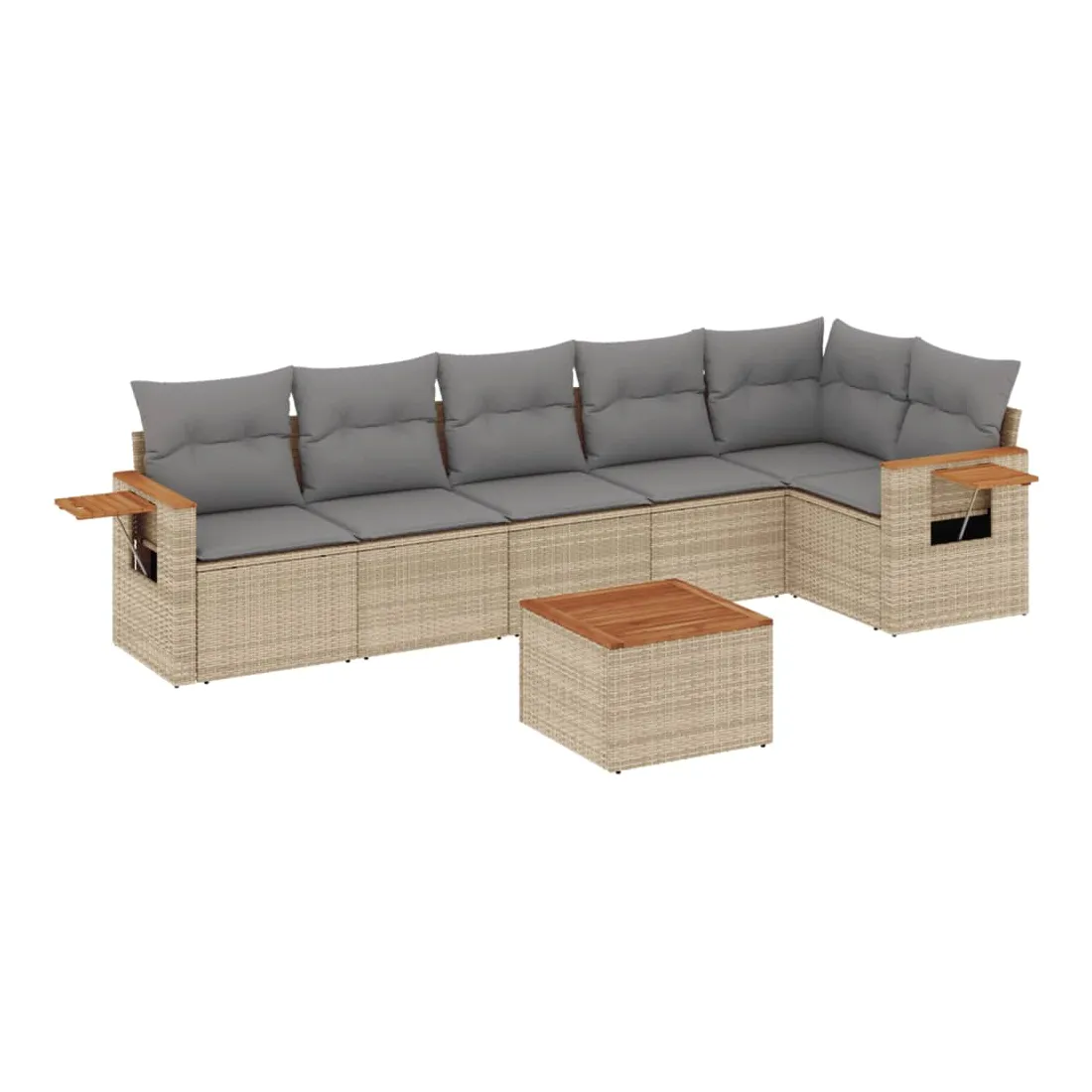 Salon de jardin avec coussins 7 pcs beige résine tressée