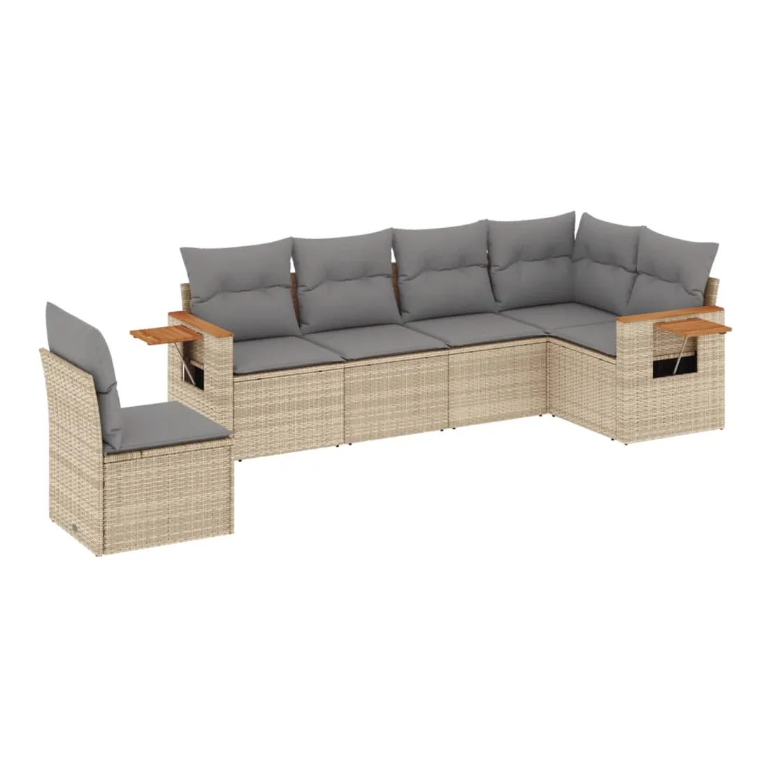 Cet ensemble de canapés de jardin est le complément parfait de votre arrière-cour, terrasse ou patio, offrant un espace confortable et accueillant pour discuter avec la famille et les amis ou simplement se détendre et profiter de l'extérieur. Matériau durable : la résine tressée, également connue sous le nom de poly rotin, est un matériau synthétique solide et nécessitant peu d'entretien qui ressemble au rotin naturel. Il est léger, facile à nettoyer et couramment utilisé pour les meubles d'extérieur en raison de sa durabilité et de ses propriétés de résistance aux intempéries.Fonction de rangement avec sac résistant à l'eau : le mobilier de jardin dispose d'un espace de rangement sous l'assise, complété par un sac résistant à l'eau pour ranger coussins, jouets et autres objets. Le sac intérieur peut être solidement fixé au mobilier d'extérieur grâce à des attaches auto-agrippantes pour plus de stabilité.Table d'appoint pratique : ce mobilier d'extérieur comprend une table d'appoint pliable avec un ressort à gaz sur les accoudoirs, offrant un endroit pratique pour garder vos essentiels à portée de main.Housse amovible et lavable : ces coussins de siège sont dotés de housses amovibles pour un lavage et un entretien faciles.Conception modulaire : cet ensemble de meubles d'extérieur a une conception modulaire, ce qui le rend complètement flexible et facile à déplacer, afin que vous puissiez créer un agencement de meubles d'extérieur personnalisé. Bon à savoir :Pour que vos meubles d'extérieur restent beaux, nous vous recommandons de les protéger avec une housse imperméable.
