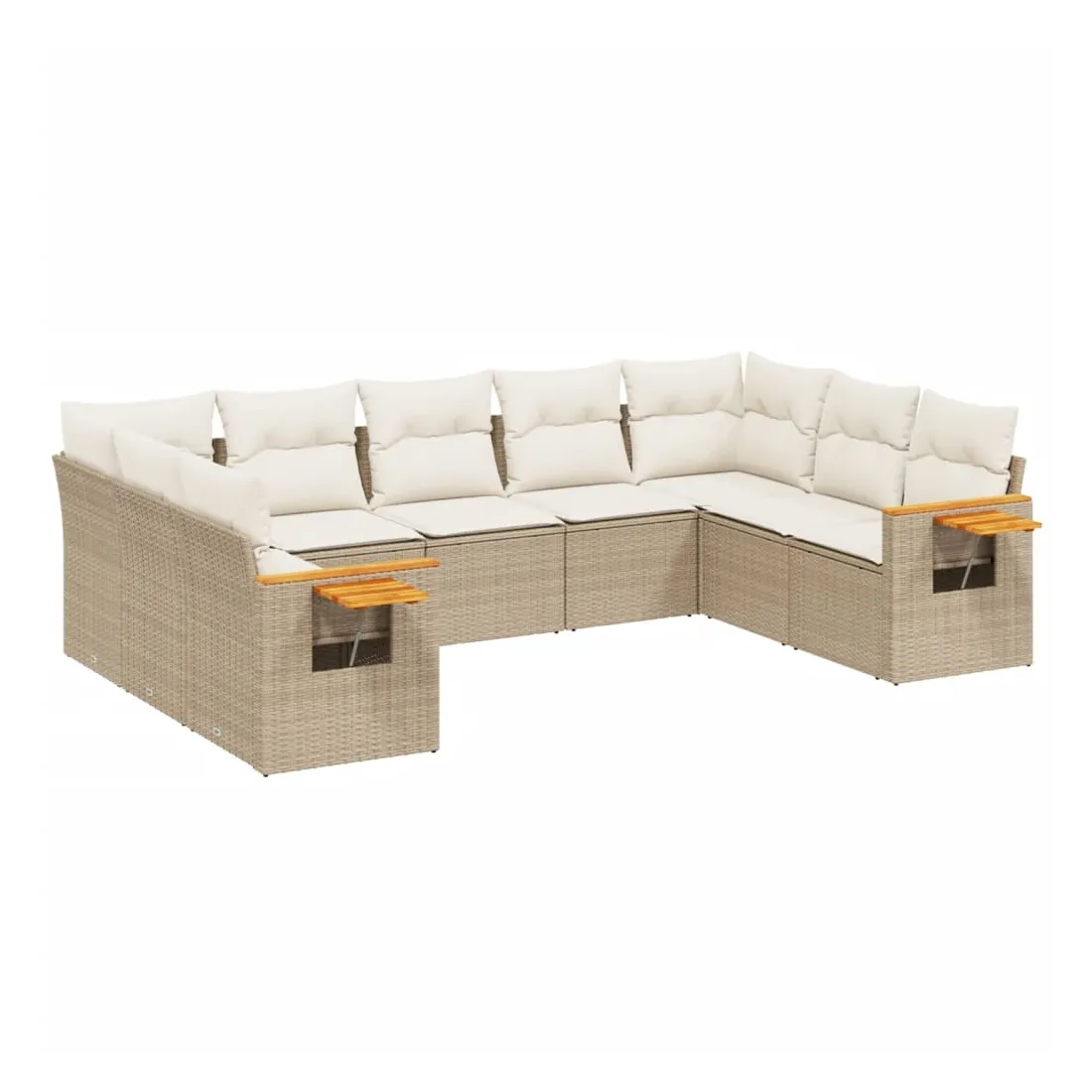 Salon de jardin avec coussins 9 pcs beige résine tressée