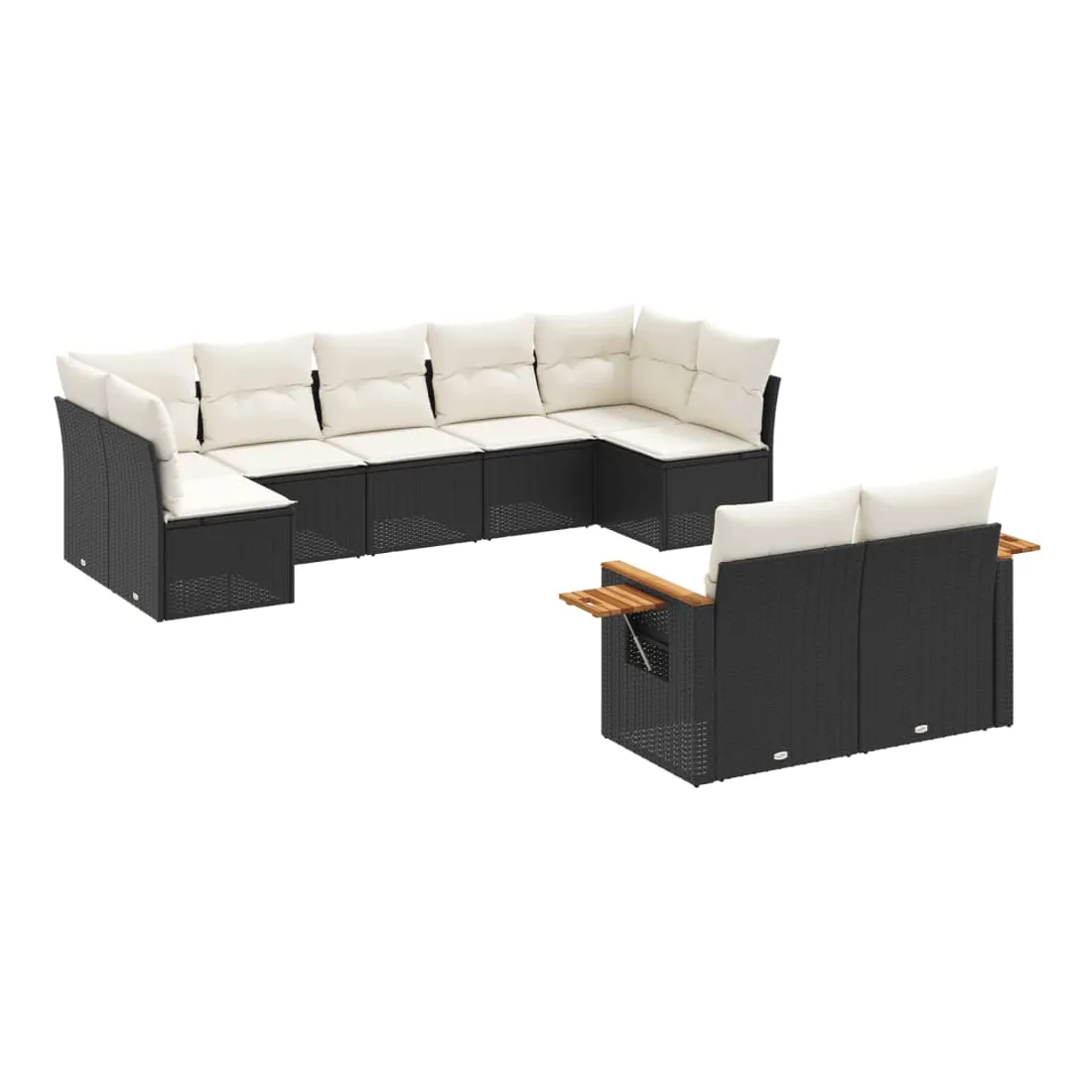 Salon de jardin 9 pcs avec coussins noir résine tressée