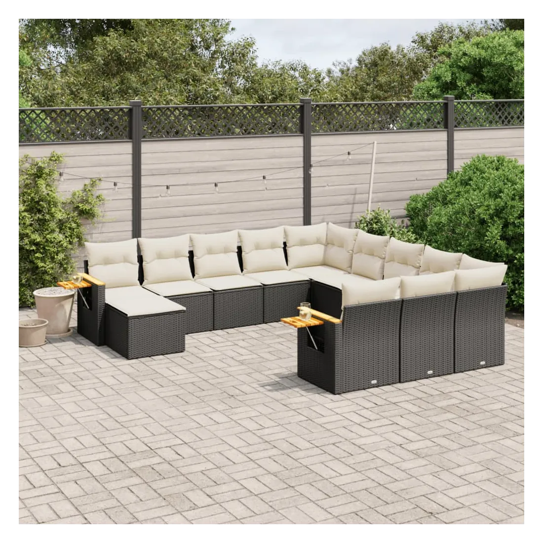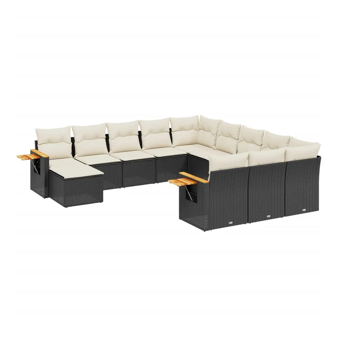 Salon de jardin 11 pcs avec coussins noir résine tressée