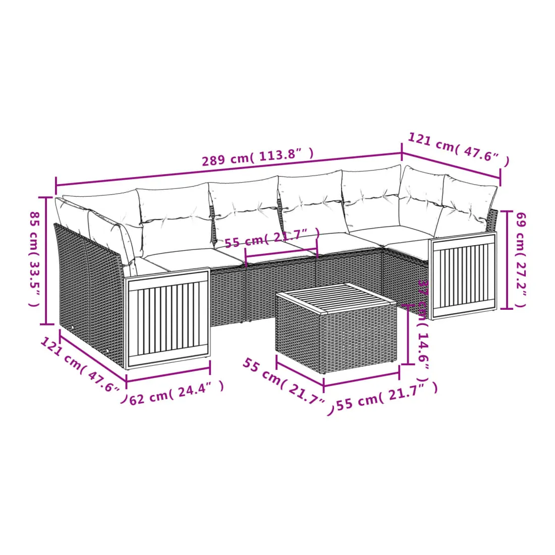 Cet ensemble de canapés de jardin est le complément parfait de votre arrière-cour, terrasse ou patio, offrant un espace confortable et accueillant pour discuter avec la famille et les amis ou simplement se détendre et profiter de l'extérieur. Matériau durable : la résine tressée, également connue sous le nom de poly rotin, est un matériau synthétique solide et nécessitant peu d'entretien qui ressemble au rotin naturel. Il est léger, facile à nettoyer et couramment utilisé pour les meubles d'extérieur en raison de sa durabilité et de ses propriétés de résistance aux intempéries.Fonction de rangement avec sac résistant à l'eau : le mobilier de jardin dispose d'un espace de rangement sous l'assise, complété par un sac résistant à l'eau pour ranger coussins, jouets et autres objets. Le sac intérieur peut être solidement fixé au mobilier d'extérieur grâce à des attaches auto-agrippantes pour plus de stabilité.Dessus stable et facile à nettoyer : cette table de jardin a un dessus en bois d'acacia robuste, durable et facile à nettoyer avec un chiffon humide.Housse amovible et lavable : ces coussins de siège sont dotés de housses amovibles pour un lavage et un entretien faciles.Conception modulaire : cet ensemble de meubles d'extérieur a une conception modulaire, ce qui le rend complètement flexible et facile à déplacer, afin que vous puissiez créer un agencement de meubles d'extérieur personnalisé. Bon à savoir :Pour que vos meubles d'extérieur restent beaux, nous vous recommandons de les protéger avec une housse imperméable.