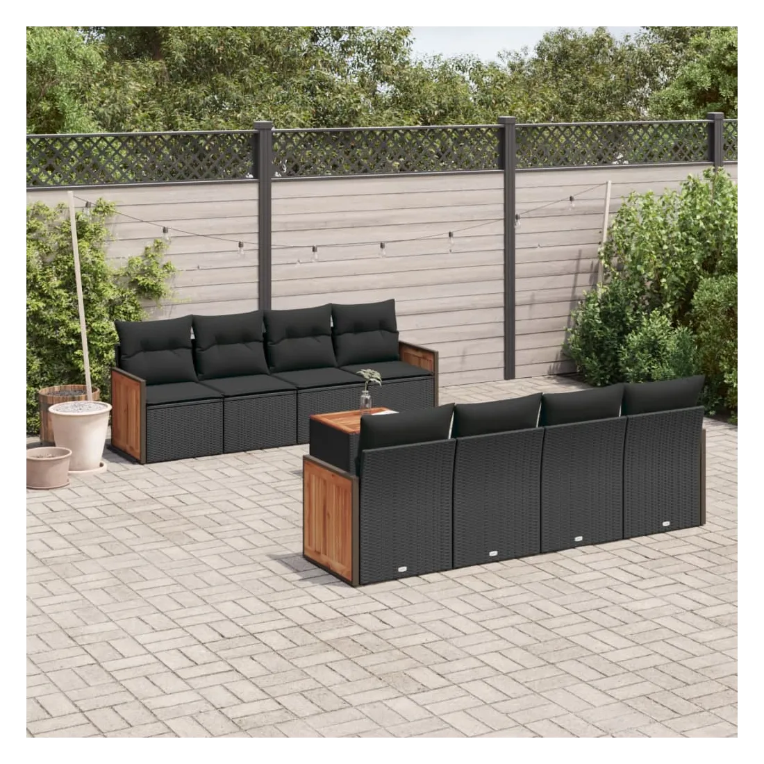 Cet ensemble de canapés de jardin est le complément parfait de votre arrière-cour, terrasse ou patio, offrant un espace confortable et accueillant pour discuter avec la famille et les amis ou simplement se détendre et profiter de l'extérieur. Matériau durable : la résine tressée, également connue sous le nom de poly rotin, est un matériau synthétique solide et nécessitant peu d'entretien qui ressemble au rotin naturel. Il est léger, facile à nettoyer et couramment utilisé pour les meubles d'extérieur en raison de sa durabilité et de ses propriétés de résistance aux intempéries.Fonction de rangement avec sac résistant à l'eau : le mobilier de jardin dispose d'un espace de rangement sous l'assise, complété par un sac résistant à l'eau pour ranger coussins, jouets et autres objets. Le sac intérieur peut être solidement fixé au mobilier d'extérieur grâce à des attaches auto-agrippantes pour plus de stabilité.Dessus stable et facile à nettoyer : cette table de jardin a un dessus en bois d'acacia robuste, durable et facile à nettoyer avec un chiffon humide.Housse amovible et lavable : ces coussins de siège sont dotés de housses amovibles pour un lavage et un entretien faciles.Conception modulaire : cet ensemble de meubles d'extérieur a une conception modulaire, ce qui le rend complètement flexible et facile à déplacer, afin que vous puissiez créer un agencement de meubles d'extérieur personnalisé. Bon à savoir :Pour que vos meubles d'extérieur restent beaux, nous vous recommandons de les protéger avec une housse imperméable.