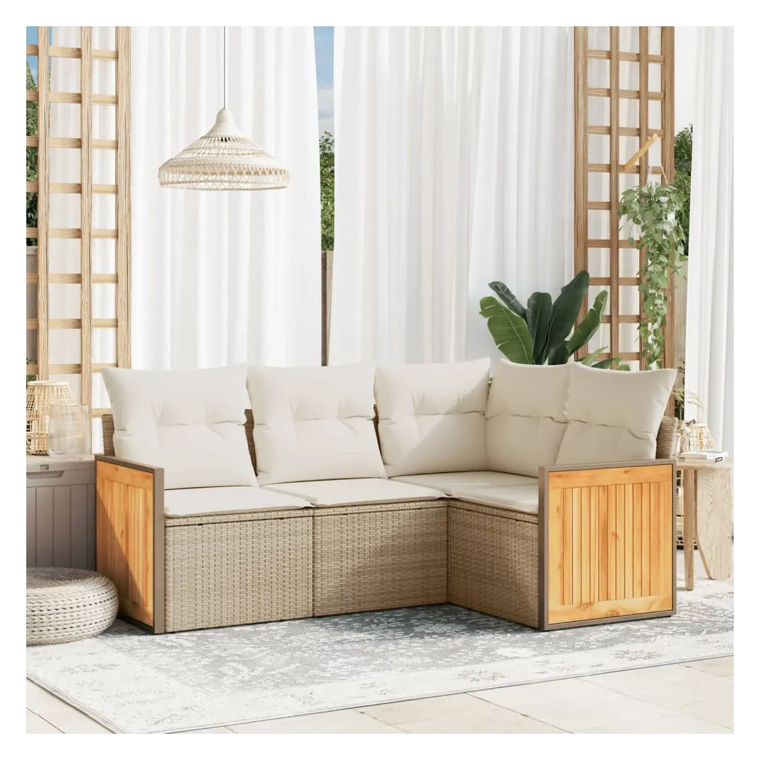 - Matériau : résine tressée, acier enduit de poudre, bois d'acacia massif avec finition à l'huile