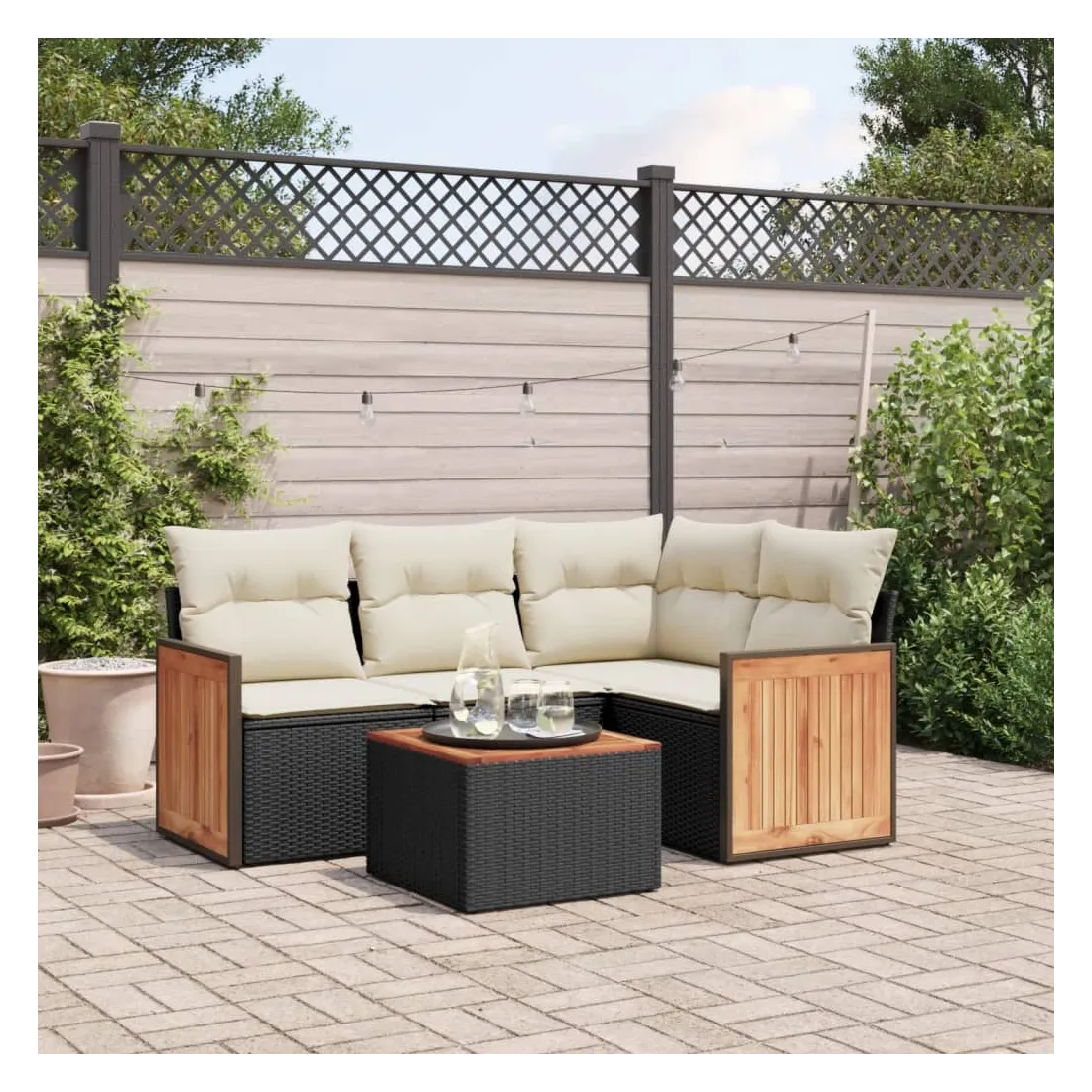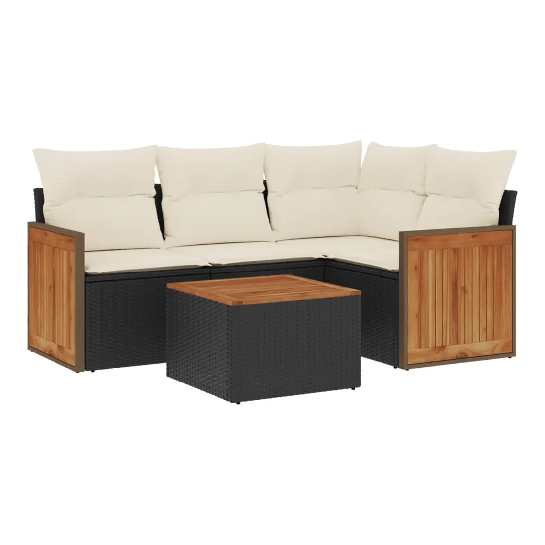 Cet ensemble de canapés de jardin est le complément parfait de votre arrière-cour, terrasse ou patio, offrant un espace confortable et accueillant pour discuter avec la famille et les amis ou simplement se détendre et profiter de l'extérieur. Matériau durable : la résine tressée, également connue sous le nom de poly rotin, est un matériau synthétique solide et nécessitant peu d'entretien qui ressemble au rotin naturel. Il est léger, facile à nettoyer et couramment utilisé pour les meubles d'extérieur en raison de sa durabilité et de ses propriétés de résistance aux intempéries.Fonction de rangement avec sac résistant à l'eau : le mobilier de jardin dispose d'un espace de rangement sous l'assise, complété par un sac résistant à l'eau pour ranger coussins, jouets et autres objets. Le sac intérieur peut être solidement fixé au mobilier d'extérieur grâce à des attaches auto-agrippantes pour plus de stabilité.Dessus stable et facile à nettoyer : cette table de jardin a un dessus en bois d'acacia robuste, durable et facile à nettoyer avec un chiffon humide.Housse amovible et lavable : ces coussins de siège sont dotés de housses amovibles pour un lavage et un entretien faciles.Conception modulaire : cet ensemble de meubles d'extérieur a une conception modulaire, ce qui le rend complètement flexible et facile à déplacer, afin que vous puissiez créer un agencement de meubles d'extérieur personnalisé. Bon à savoir :Pour que vos meubles d'extérieur restent beaux, nous vous recommandons de les protéger avec une housse imperméable.