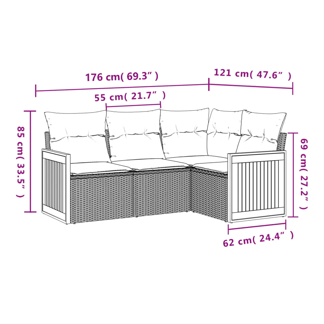- Dimensions du coussin de siège : 55 x 55 x 3 cm (l x P x é)