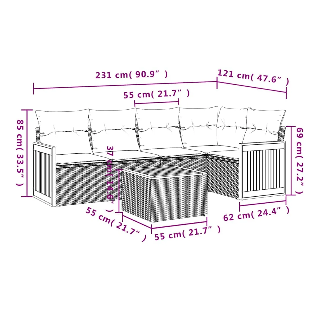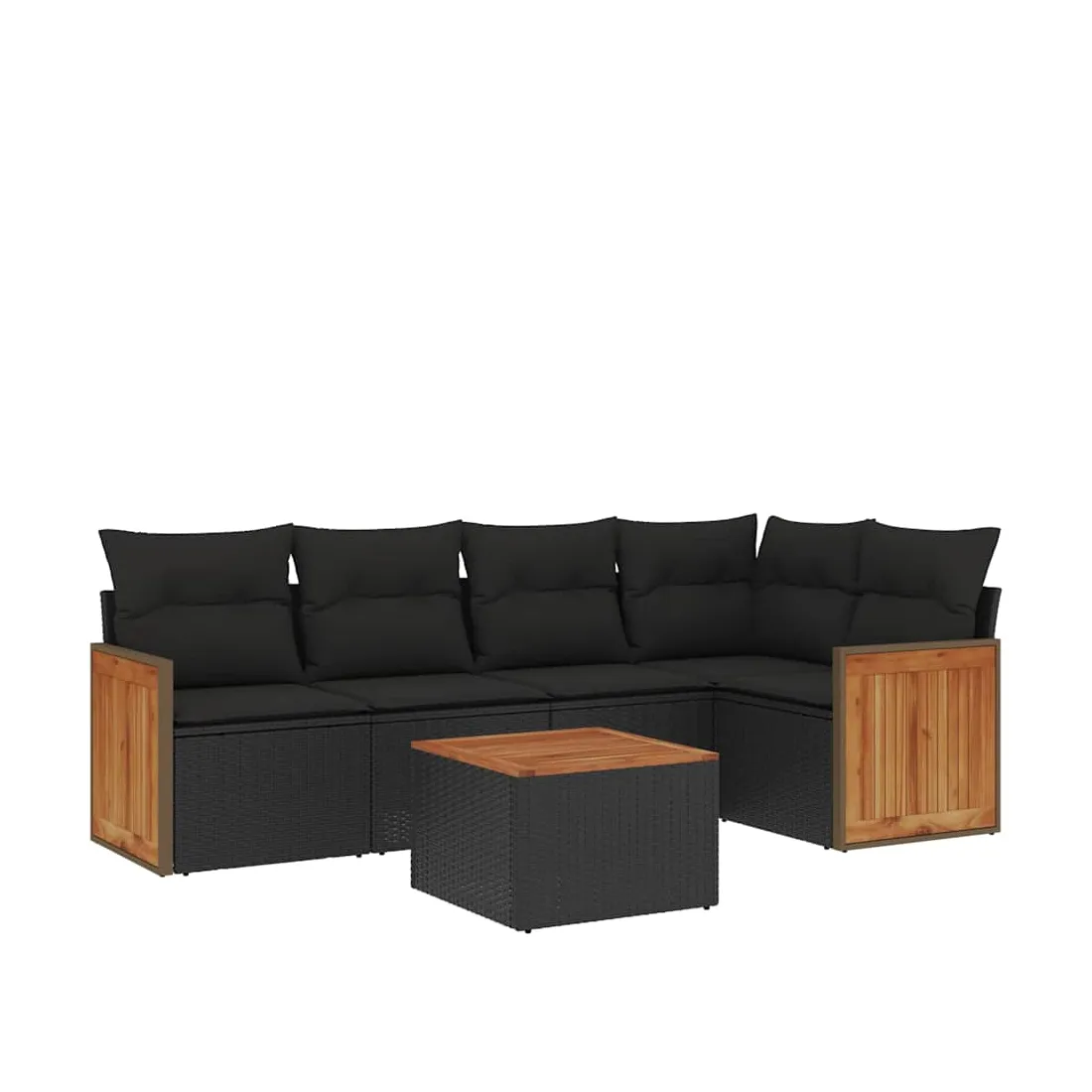 Salon de jardin 6 pcs avec coussins noir résine tressée