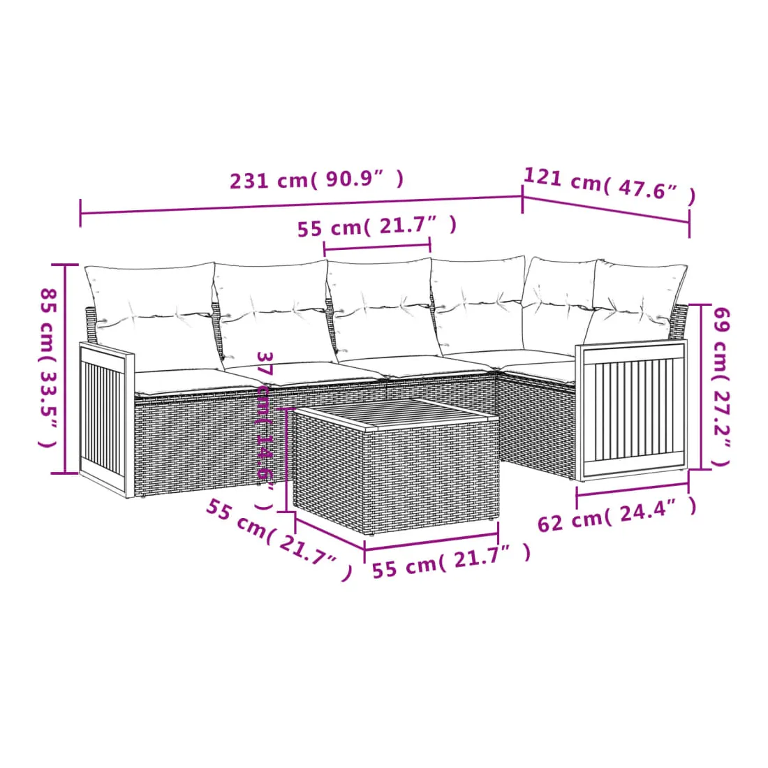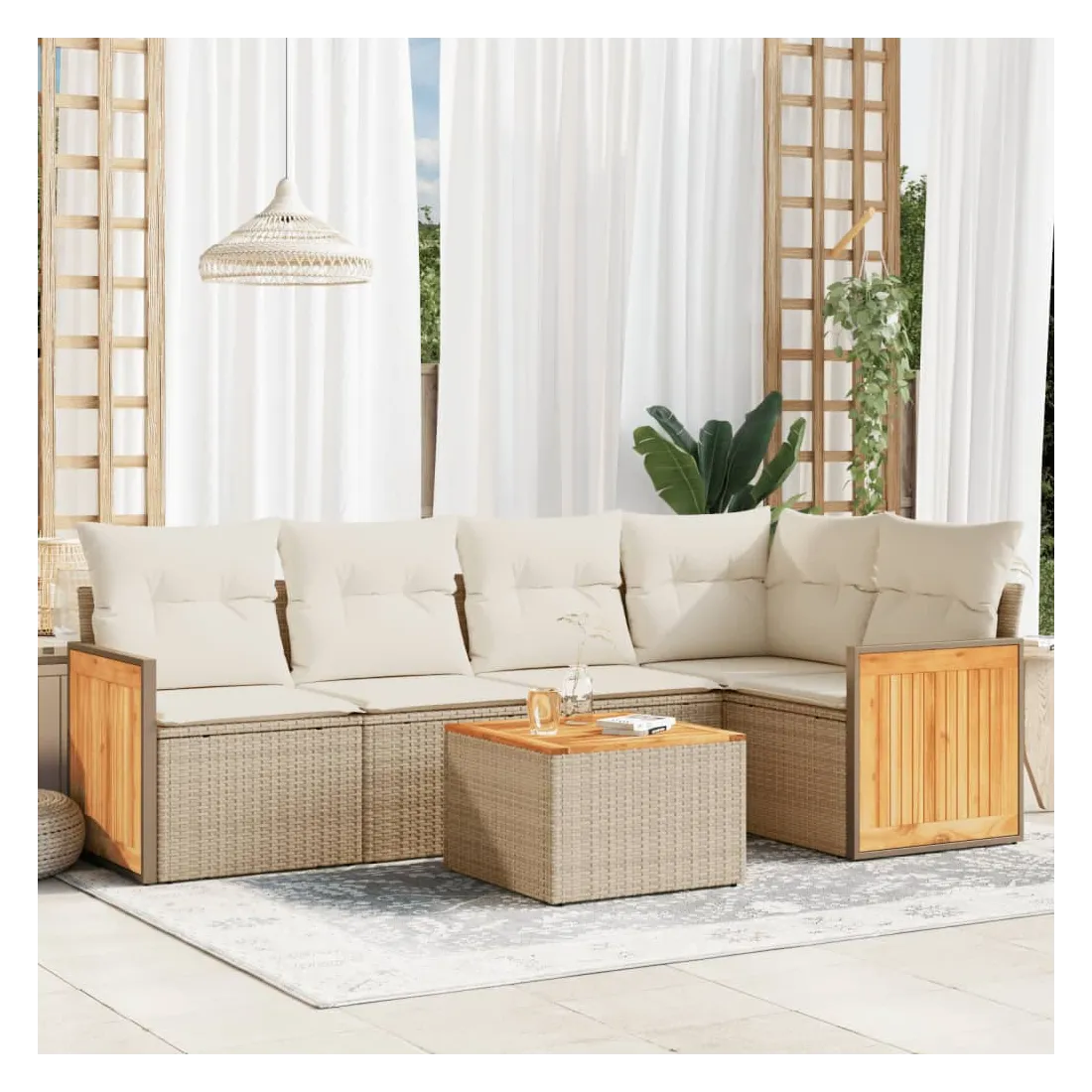 Salon de jardin avec coussins 6 pcs beige résine tressée