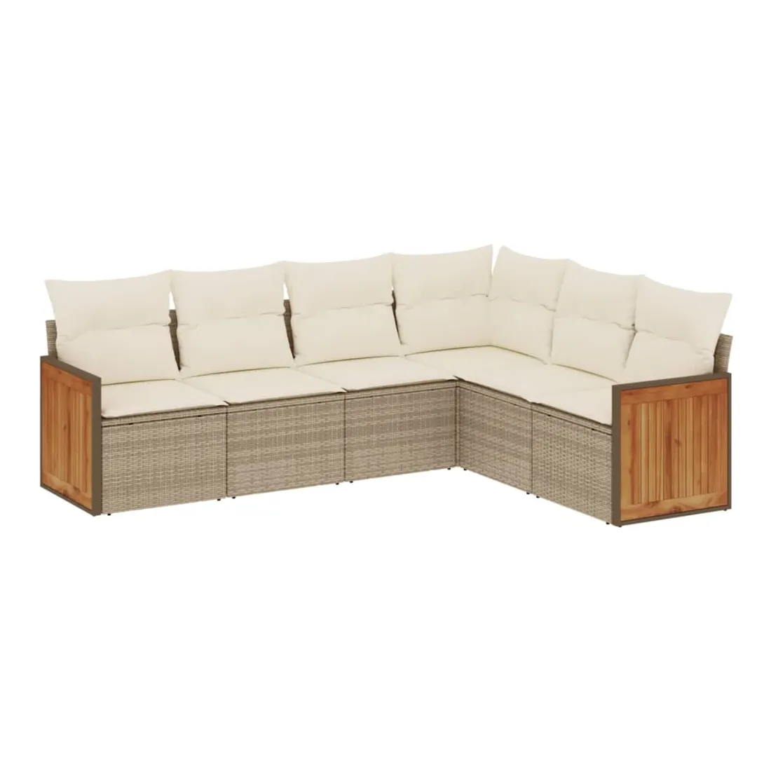 Salon de jardin avec coussins 6 pcs beige résine tressée