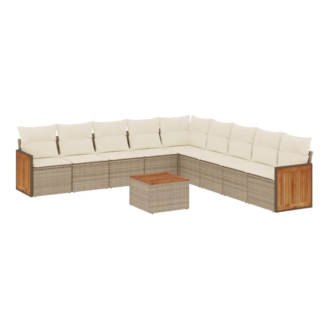 Cet ensemble de canapés de jardin est le complément parfait de votre arrière-cour, terrasse ou patio, offrant un espace confortable et accueillant pour discuter avec la famille et les amis ou simplement se détendre et profiter de l'extérieur. Matériau durable : la résine tressée, également connue sous le nom de poly rotin, est un matériau synthétique solide et nécessitant peu d'entretien qui ressemble au rotin naturel. Il est léger, facile à nettoyer et couramment utilisé pour les meubles d'extérieur en raison de sa durabilité et de ses propriétés de résistance aux intempéries.Fonction de rangement avec sac résistant à l'eau : le mobilier de jardin dispose d'un espace de rangement sous l'assise, complété par un sac résistant à l'eau pour ranger coussins, jouets et autres objets. Le sac intérieur peut être solidement fixé au mobilier d'extérieur grâce à des attaches auto-agrippantes pour plus de stabilité.Dessus stable et facile à nettoyer : cette table de jardin a un dessus en bois d'acacia robuste, durable et facile à nettoyer avec un chiffon humide.Housse amovible et lavable : ces coussins de siège sont dotés de housses amovibles pour un lavage et un entretien faciles.Conception modulaire : cet ensemble de meubles d'extérieur a une conception modulaire, ce qui le rend complètement flexible et facile à déplacer, afin que vous puissiez créer un agencement de meubles d'extérieur personnalisé. Bon à savoir :Pour que vos meubles d'extérieur restent beaux, nous vous recommandons de les protéger avec une housse imperméable.
