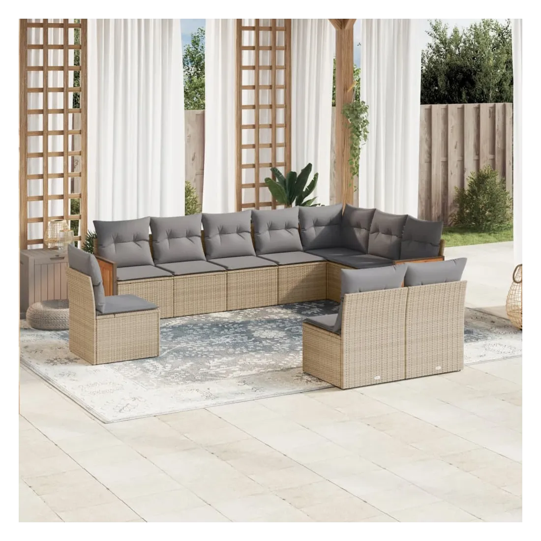 Cet ensemble de canapés de jardin est le complément parfait de votre arrière-cour, terrasse ou patio, offrant un espace confortable et accueillant pour discuter avec la famille et les amis ou simplement se détendre et profiter de l'extérieur. Matériau durable : la résine tressée, également connue sous le nom de poly rotin, est un matériau synthétique solide et nécessitant peu d'entretien qui ressemble au rotin naturel. Il est léger, facile à nettoyer et couramment utilisé pour les meubles d'extérieur en raison de sa durabilité et de ses propriétés de résistance aux intempéries.Fonction de rangement avec sac résistant à l'eau : le mobilier de jardin dispose d'un espace de rangement sous l'assise, complété par un sac résistant à l'eau pour ranger coussins, jouets et autres objets. Le sac intérieur peut être solidement fixé au mobilier d'extérieur grâce à des attaches auto-agrippantes pour plus de stabilité.Housse amovible et lavable : ces coussins de siège sont dotés de housses amovibles pour un lavage et un entretien faciles.Conception modulaire : cet ensemble de meubles d'extérieur a une conception modulaire, ce qui le rend complètement flexible et facile à déplacer, afin que vous puissiez créer un agencement de meubles d'extérieur personnalisé. Bon à savoir :Pour que vos meubles d'extérieur restent beaux, nous vous recommandons de les protéger avec une housse imperméable.